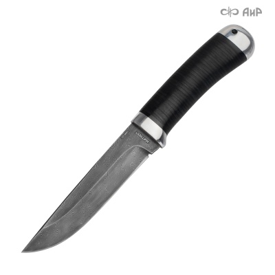 Рукоять выполнена из кожи — прочного и практичного материала, который обеспечивает удобный хват и комфорт при длительном использовании. Эргономичная форма подходит для ладоней любого размера, а гарда средней величины защищает пальцы при работе. На навершии предусмотрено отверстие под темляк. Конструкция ножа — сквозной неразборный монтаж, гарантирующий долговечность.