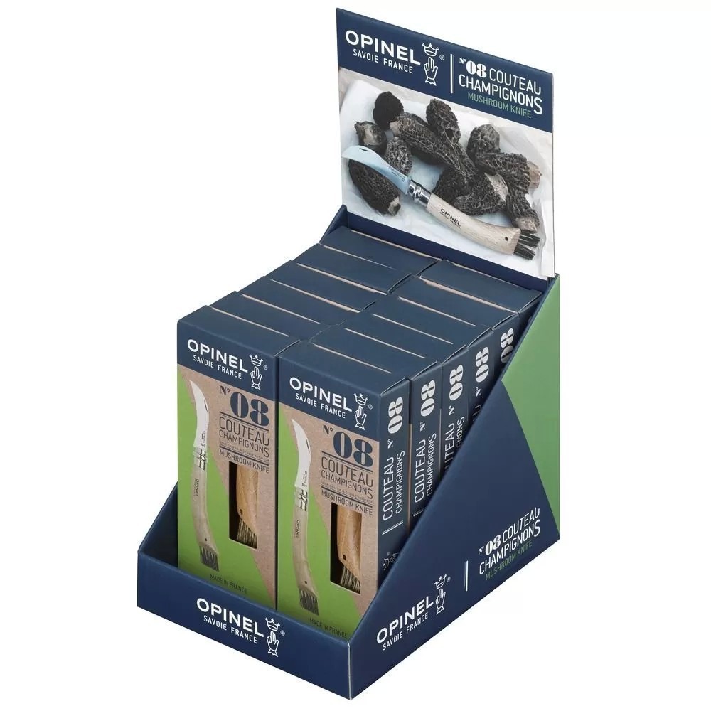 Дисплей-набор 12 шт, нож грибника Opinel №8, нержавеющая сталь, рукоять бук