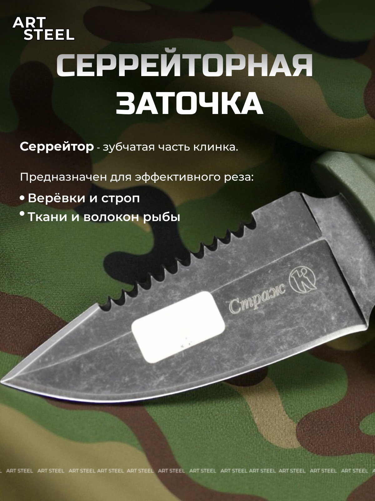 Клинок туристического ножа Страж выполнен из японской нержавеющей стали AUS8. Сталь обладает оптимальным соотношением гибкости и твердости в 56-58 HRC, отличными режущими свойствами, высокой коррозионной стойкостью и устойчивостью к механическим повреждениям. Ножи с клинками из AUS-8 не требуют частой заточки, для них пригодны большинство марок абразивов и подручных средств, не требующих специальных навыков. Форма клинка Spear point (копьевидная) обладает универсальным применением и является одной из самых популярных форм клинков. Клинки такой формы подходят для различных задач и областей использования, благодаря остроте лезвия и отличной проникающей способности. Благодаря характерной форме спусков, ножи с вогнутой линзой прекрасно подходят для вспарывания шкуры и разделки мягких тканей, что делает их идеальными для работ с материалами, требующими точного и контролируемого разреза.