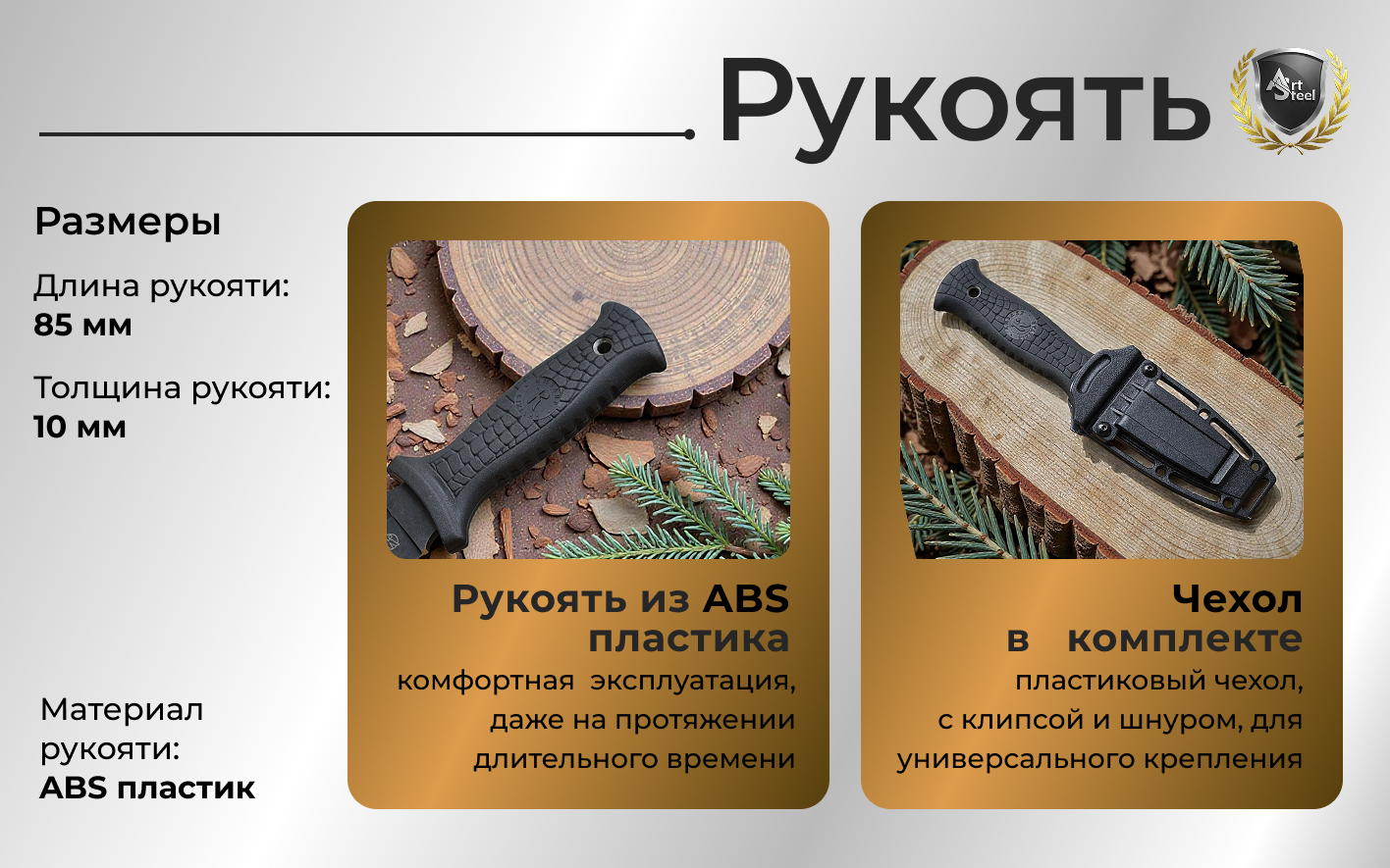 Клинок из стали AUS8 с твердостью 56-58 HRC представляет собой отличный выбор для ножей, используемых в кемпинге, туризме, рыбалке и других видах активного отдыха на природе. Данная сталь обладает высокой корозионной стойкостью, оптимальной твердостью и долго сохраняет заточку. Клинок профиля Spear point выглядит как кинжал, имеет симметричную форму с острым кончиком, что обеспечивает удобство использования как для правшей, так и для левшей. Это делает его универсальным при эксплуатации. Вогнутые спуски часто встречаются на разделочных и охотничьих ножах. Клинок с вогнутыми спусками имеет тонкий острый край, обеспечивающий отличную режущую способность.