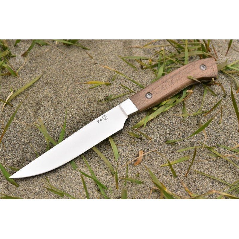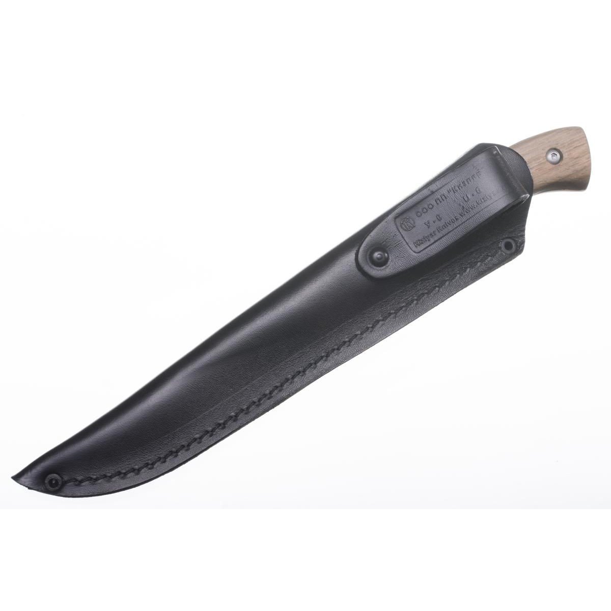 Конструкция - Сплошная, хвостовик проходит через всю рукоять (full tang).Деревянные плашки рукояти скреплены с помощью винтов