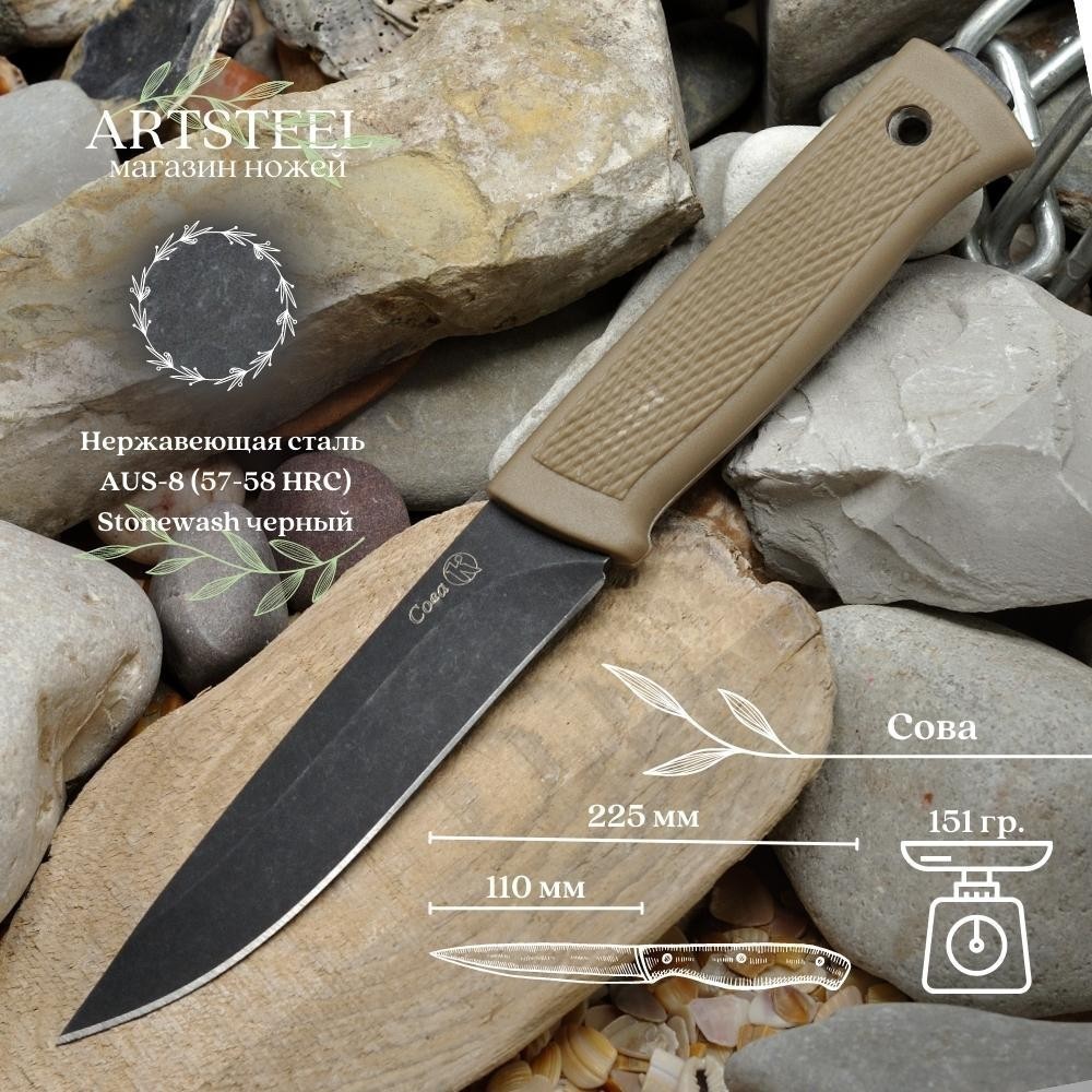 Туристический нож Сова, сталь AUS8, рукоять эластрон К03230