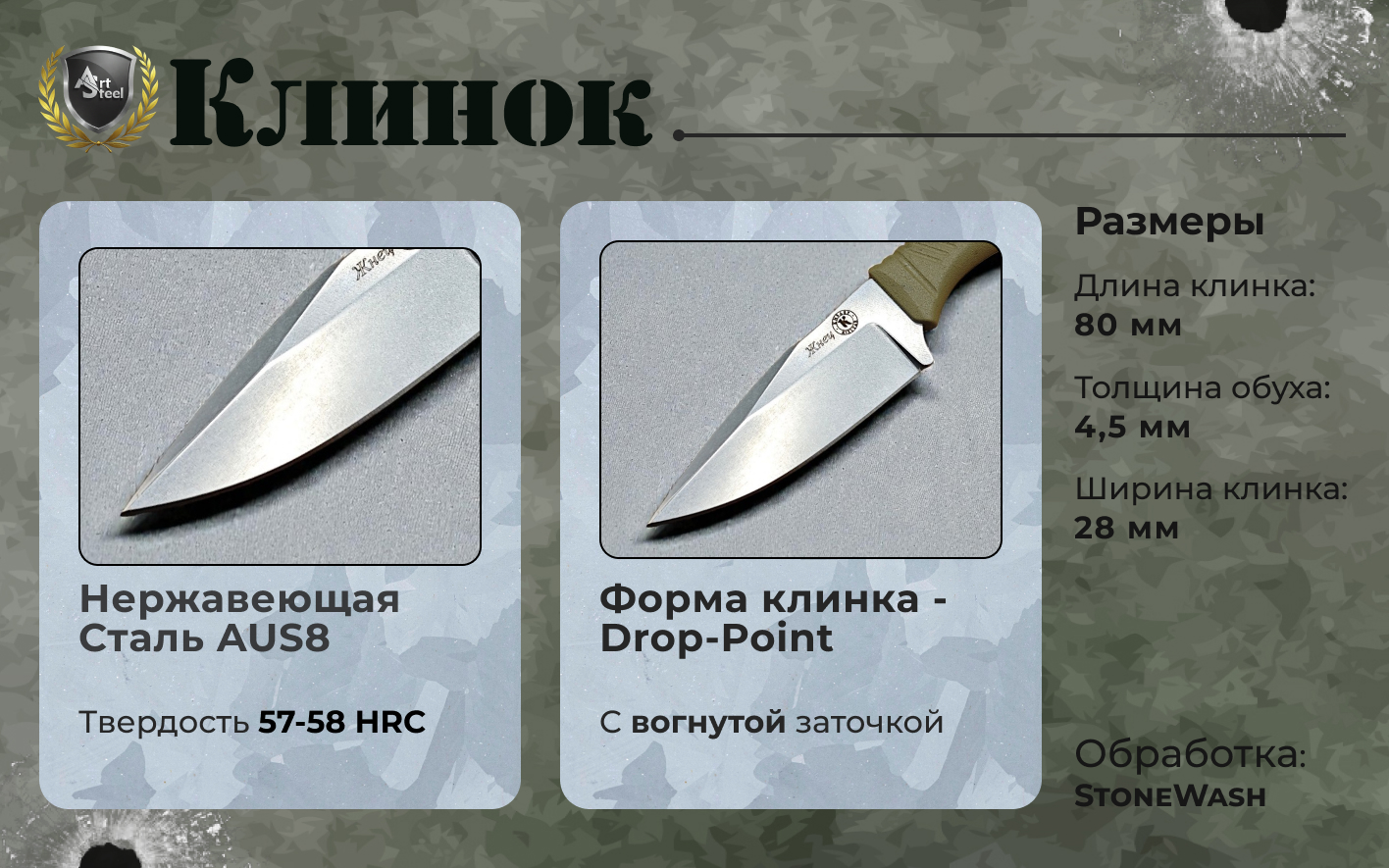Нож Жнец из стали AUS-8, рукоять эластрон К03260