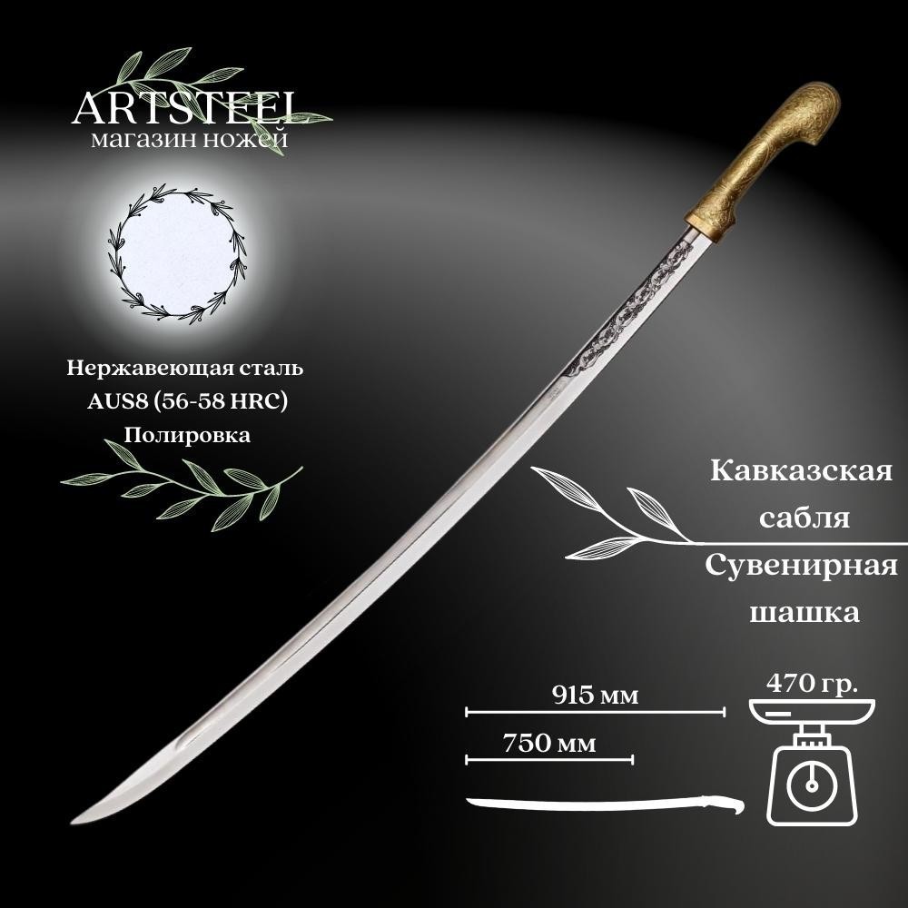 Кавказская шашка (сувенирная сабля), сталь AUS8, длина лезвия 750 мм К06005