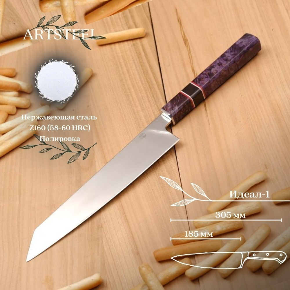 Кухонный нож Идеал-1 из стали Z160, рукоять карельская береза, G10 К07013