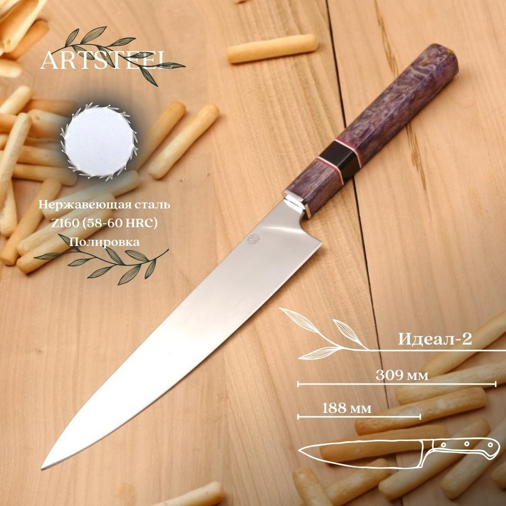 Кухонный нож Идеал-2 из стали Z160, рукоять карельская береза, G10 К07014