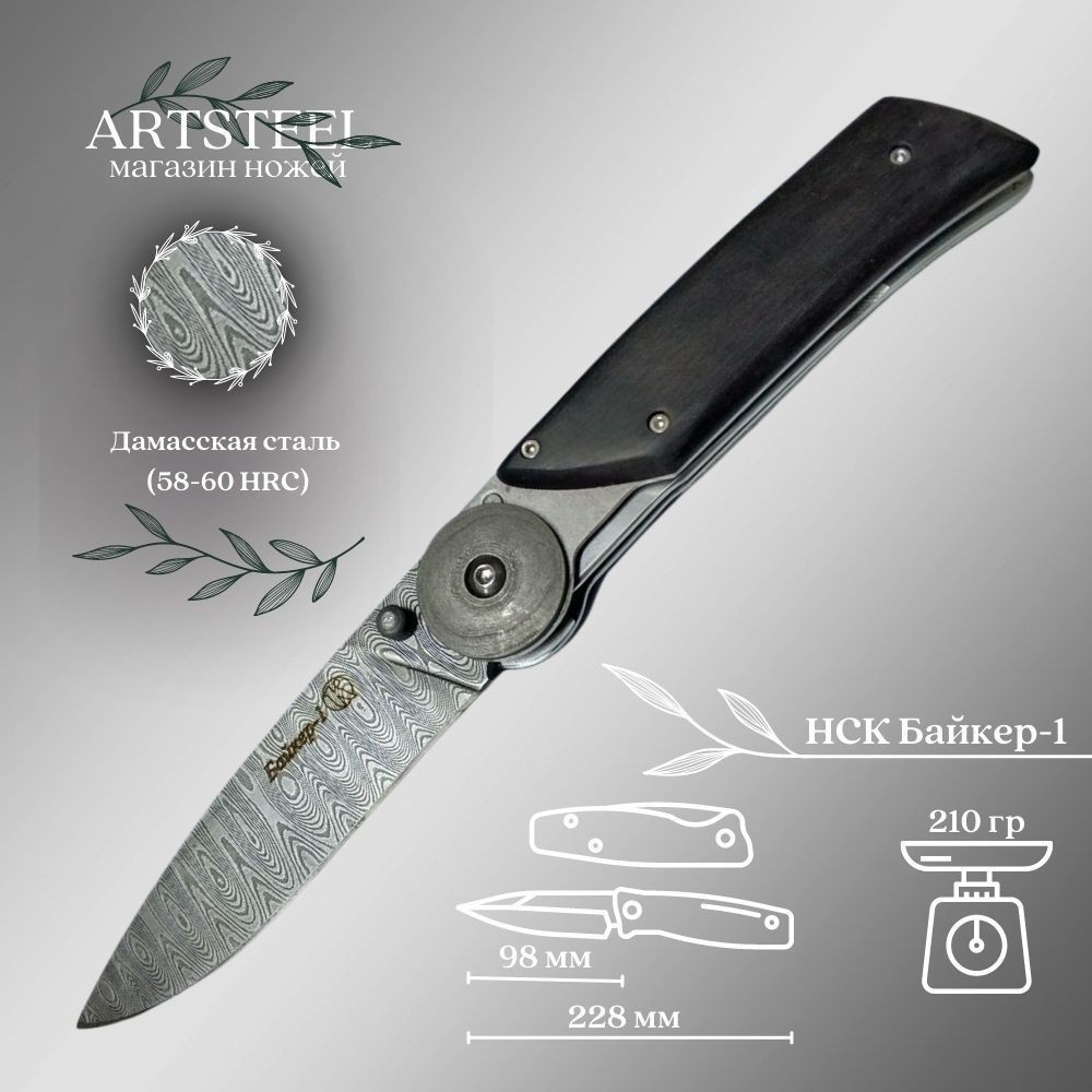 Складной нож НСК Байкер-1, дамасская сталь, рукоять граб К08004