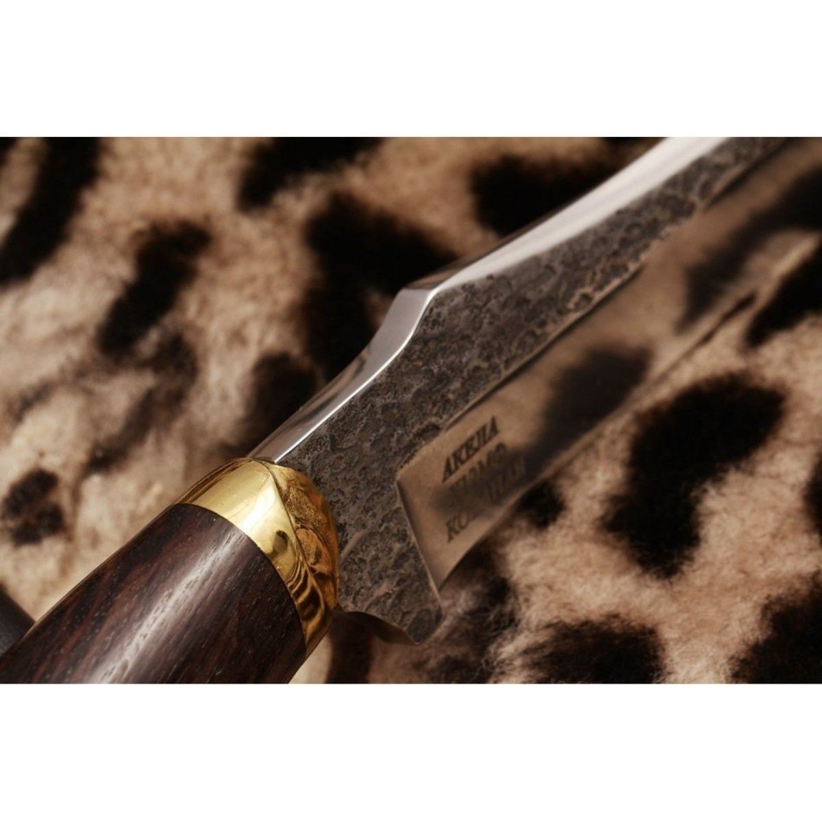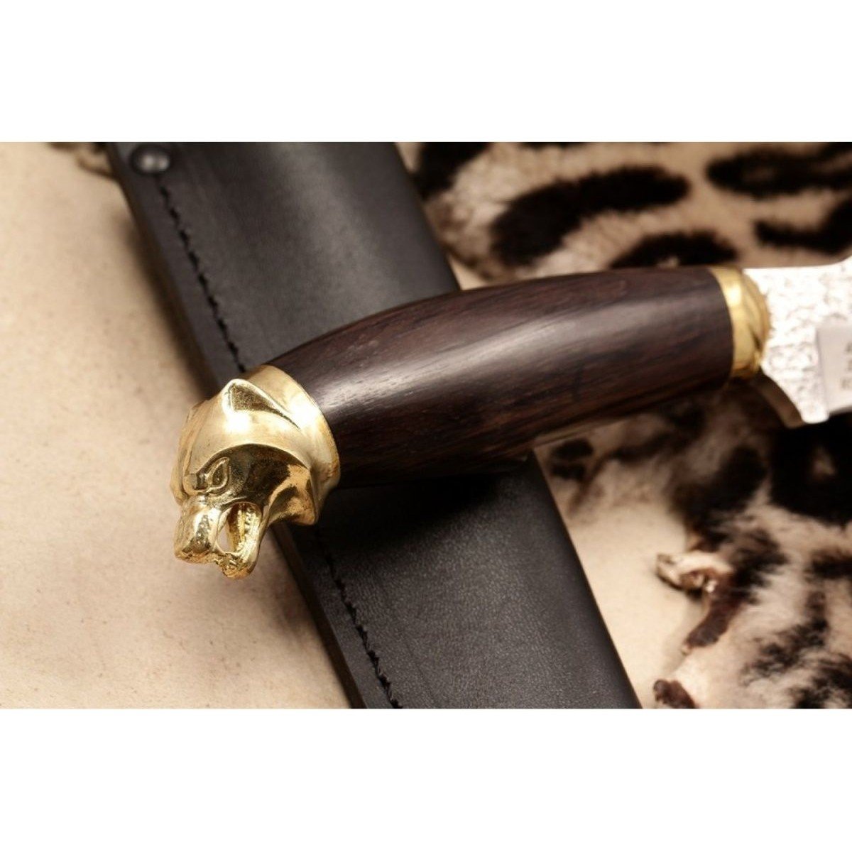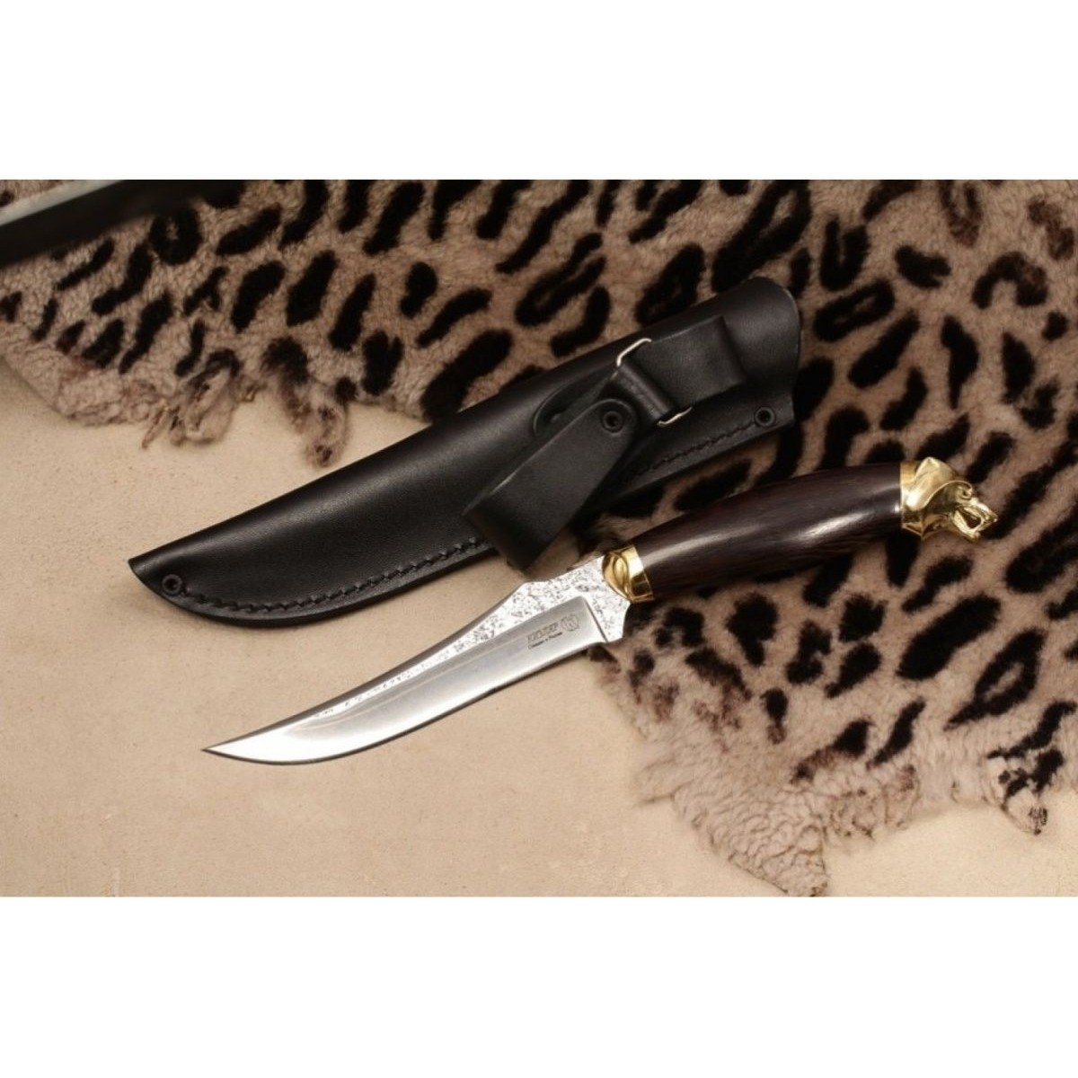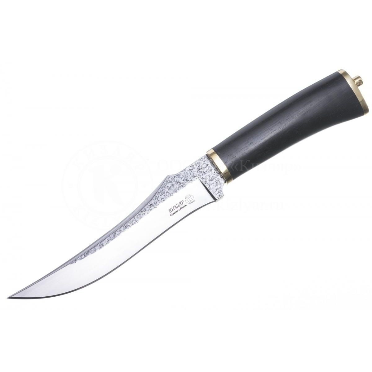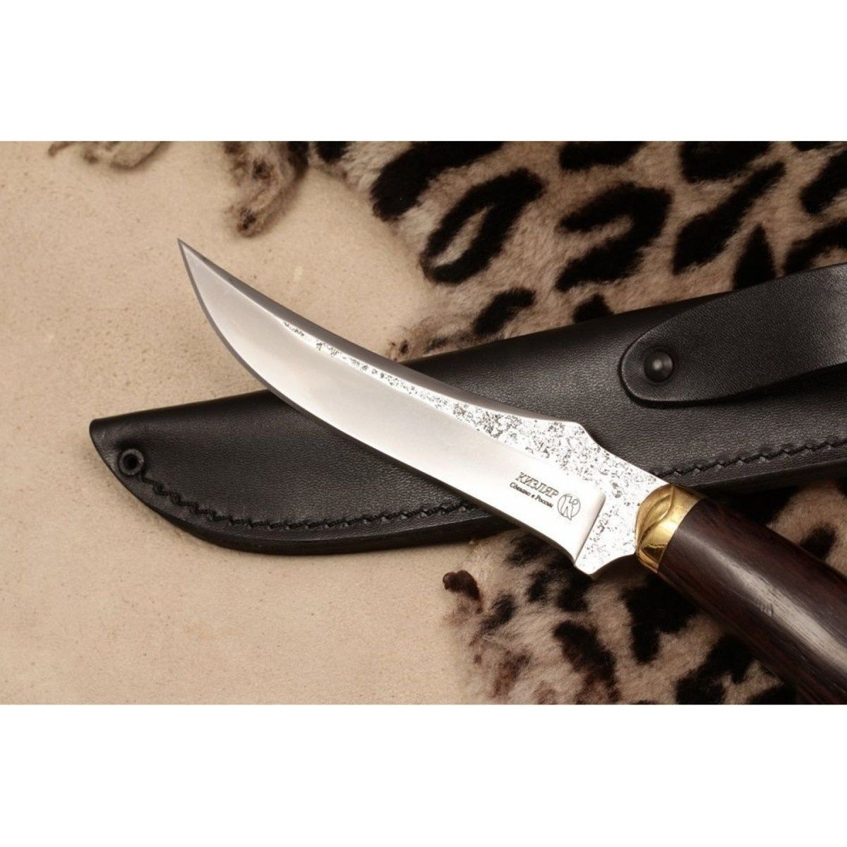 Сталь Х12МФ твёрдость 58-60 HRC, российская инструментальная кованная сталь прекрасно подходит любителям ножей с агрессивным резом, держит остроту очень продолжительное время. Легко правится на алмазных брусках и ремнях с нанесением абразива. Средняя стойкость к коррозии, необходим минимальный уход за сталью. При неправильном использовании ножа возможны сколы на режущей кромке, невысокая ударная прочность.