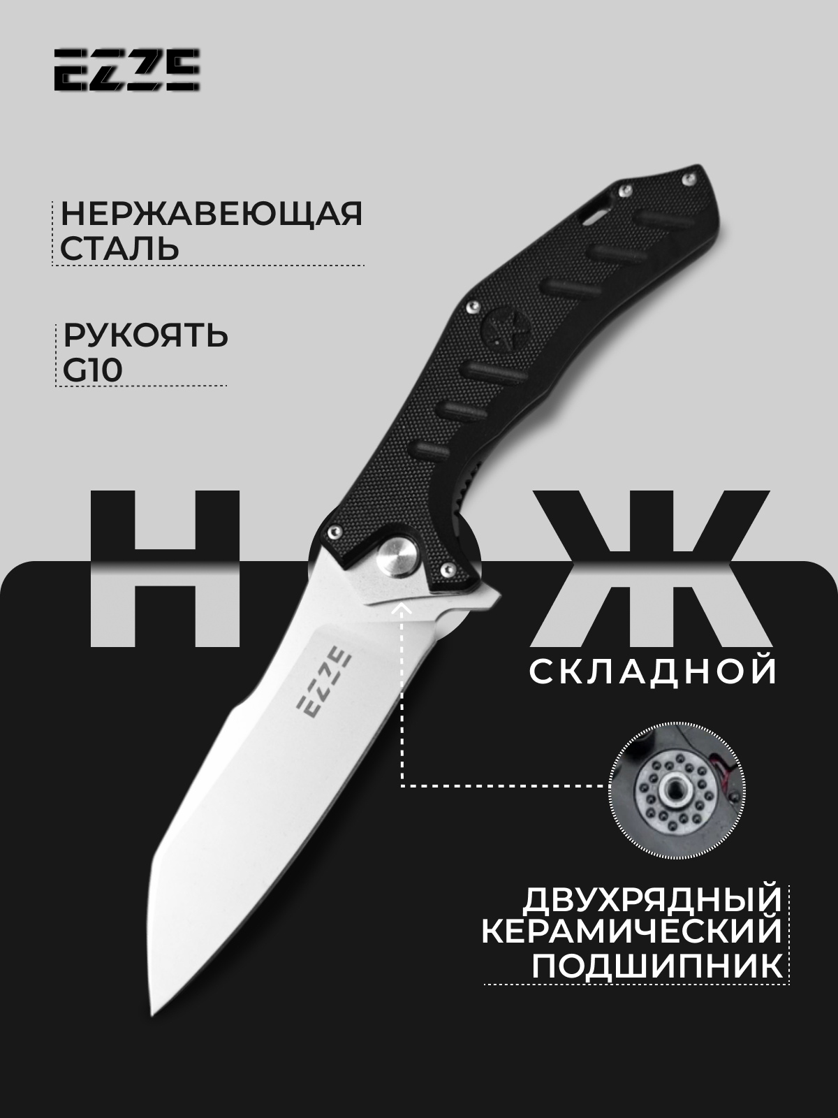 Складной нож EZ104, сталь 65Х13, рукоять G10 EZ104-DBK-P