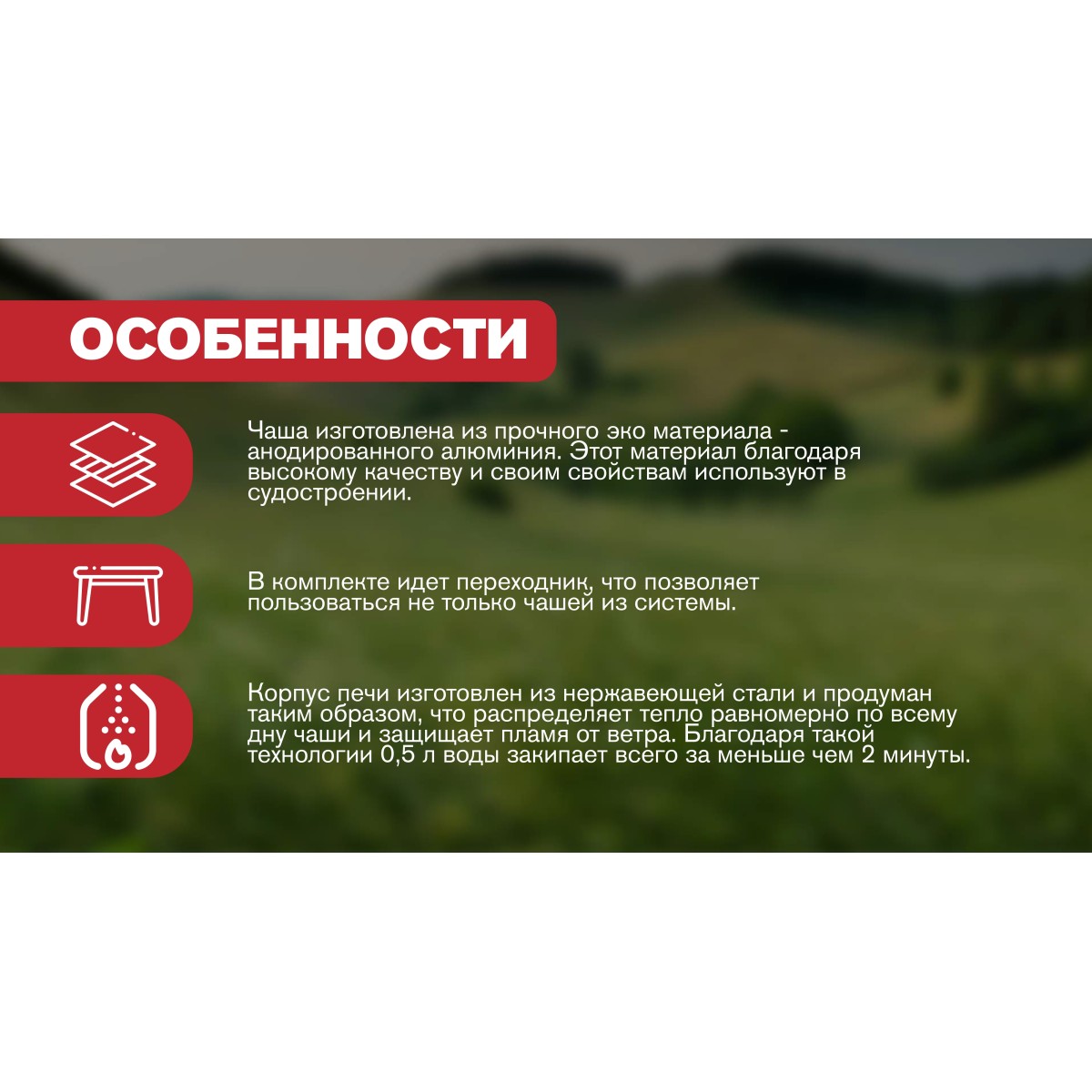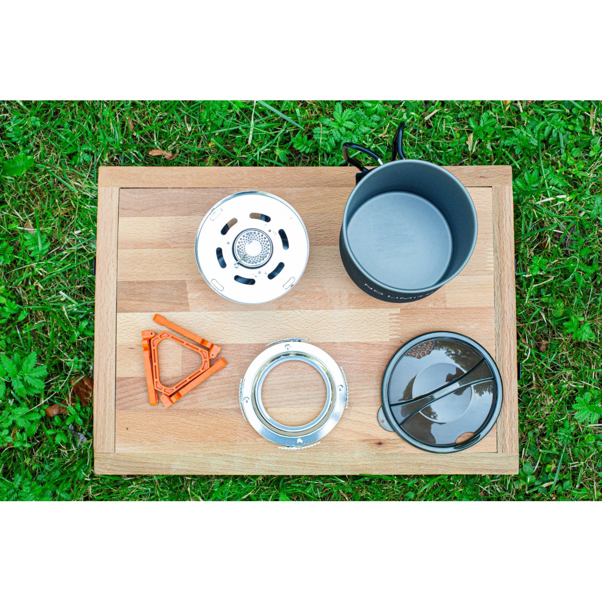 Система приготовления пищи, которая пригодится вам в туристической деятельности и активном отдыхе. Включает в себя горшок, газовую плиту, держатель для горшка, а также подставку для газовых баллонов.