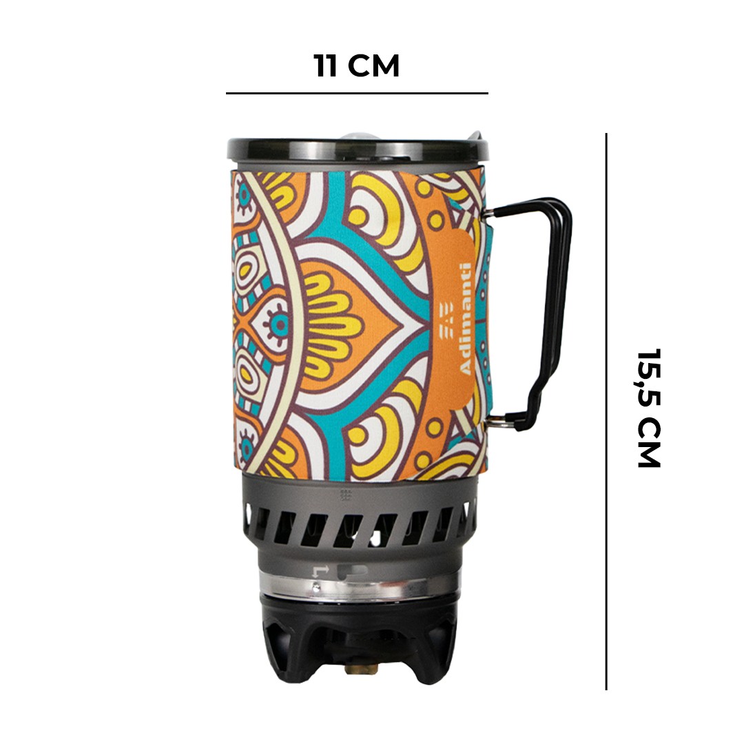 Горшок объёмом 1400 миллилитров изготовлен из твёрдого анодированного алюминия. Размеры изделия составляют: диаметр равен 110 миллиметрам, а высота – 155 миллиметрам. Горшок обеспечен мягкой крышкой из термопластичного эластомера с отверстием для кофе, не содержит BPA. Складная ручка из нержавеющей стали с силиконовым покрытием. Ультразвуковая сварка без заклёпок на котле. Алюминиевый теплопередатчик и лобовое стекло. Снаружи горшка для защиты предусмотрена чёрная неопреновая прокладка.
