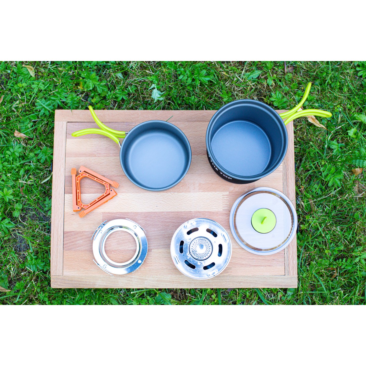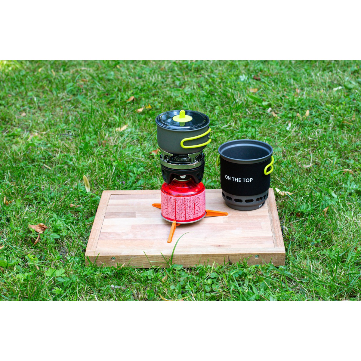 Система приготовления пищи для использования в туризме и активном отдыхе. Включает в себя горшок, мини-сковородку, газовую плитку, держатель, подставку для газовых баллонов.
