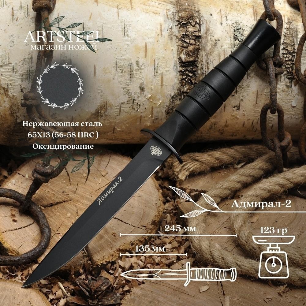 Туристический нож Адмирал-2, сталь 65Х13, рукоять резина, сталь B112-78