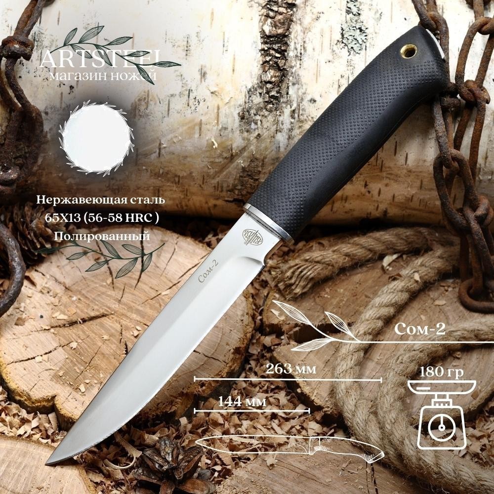 Туристический нож Сом-2, сталь 65Х13, рукоять пластик, резина B170-39