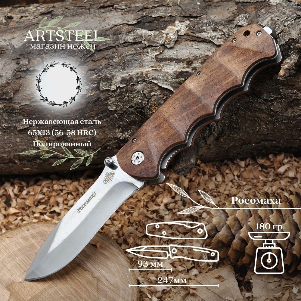 Складной нож Росомаха, сталь 65Х13, рукоять дерево B176-33