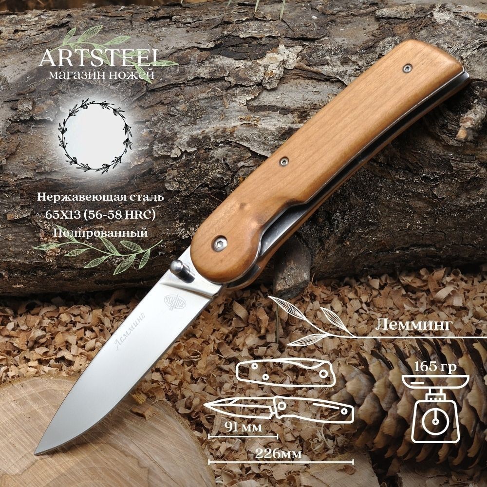 Складной нож Лемминг, сталь 65Х13, рукоять гикори B181-33