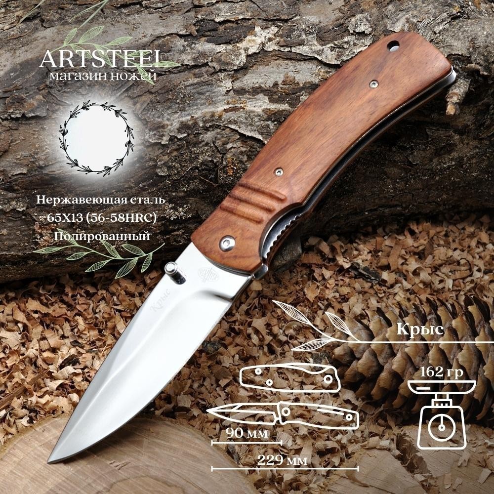 Складной нож Крыс, сталь 65Х13, рукоять дерево B183-33