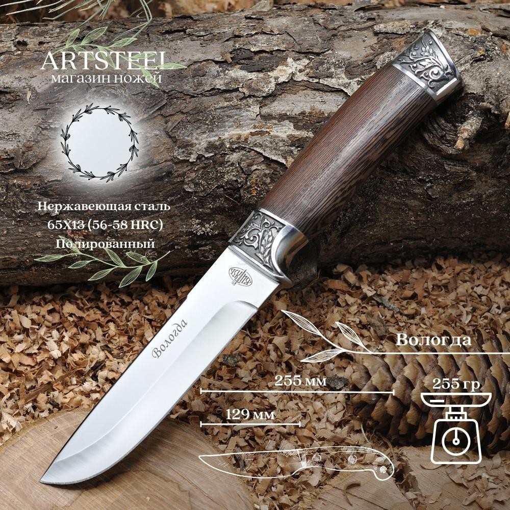 Туристический нож Вологда, сталь 65Х13, рукоять дерево, металл B212-341