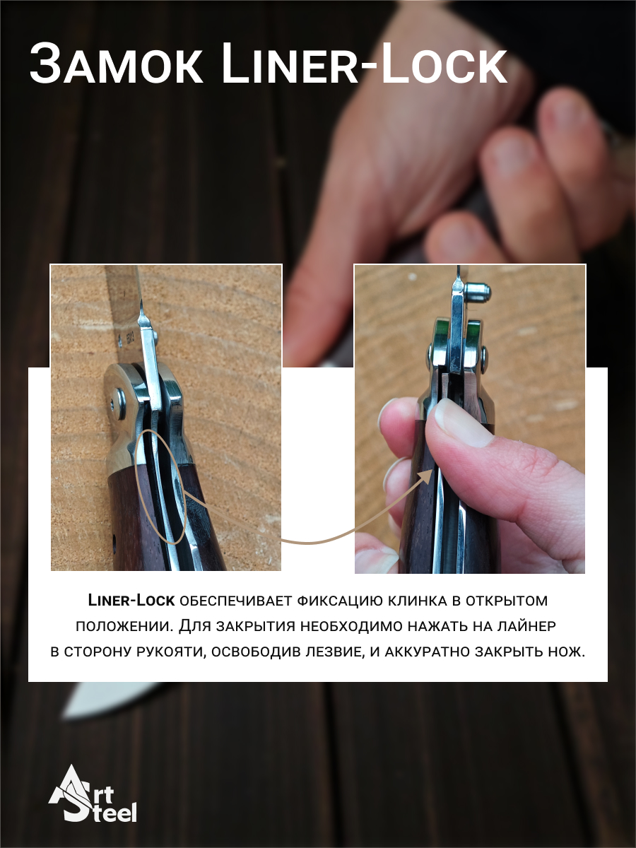Надежный замок Liner Lock предотвращает самопроизвольное закрытие клинка, обеспечивая безопасность при эксплуатации. Для удобства предусмотрено отверстие под темляк.
