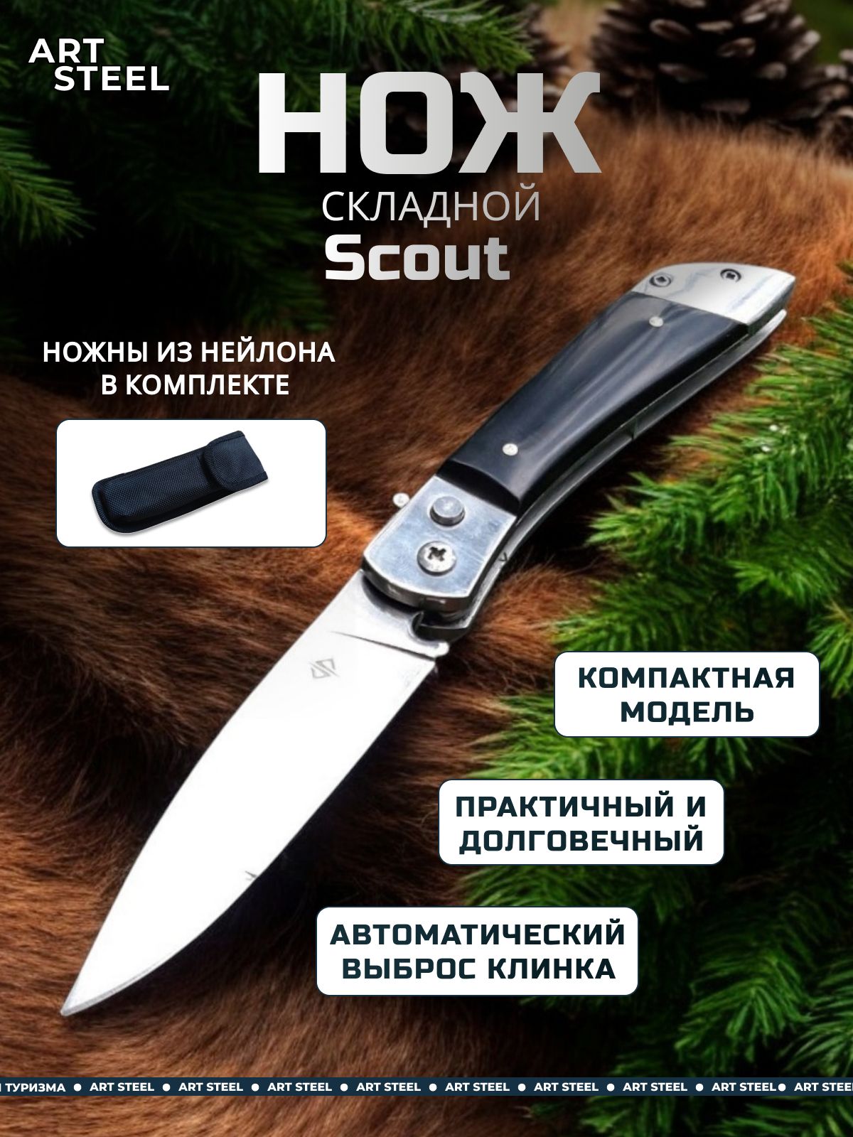 Автоматический складной нож Scout (кнопочный), сталь 65Х13, рукоять металл, смола DP104