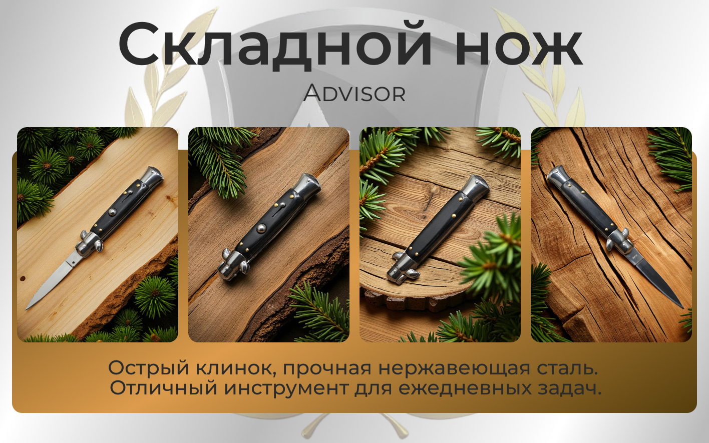 Автоматический складной нож Advisor, сталь 65Х13, рукоять дерево, сталь