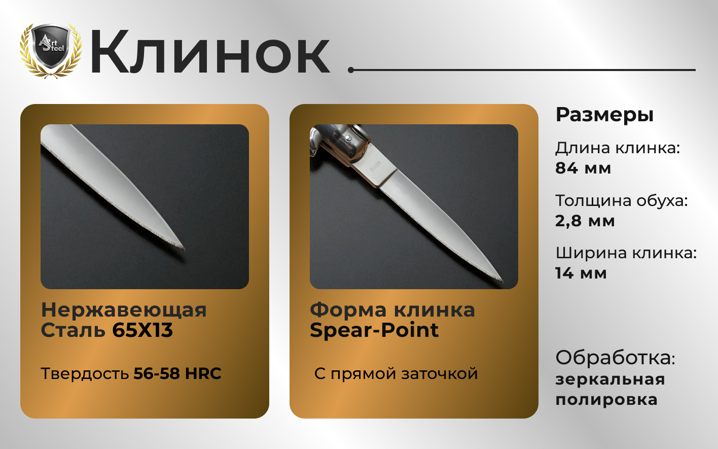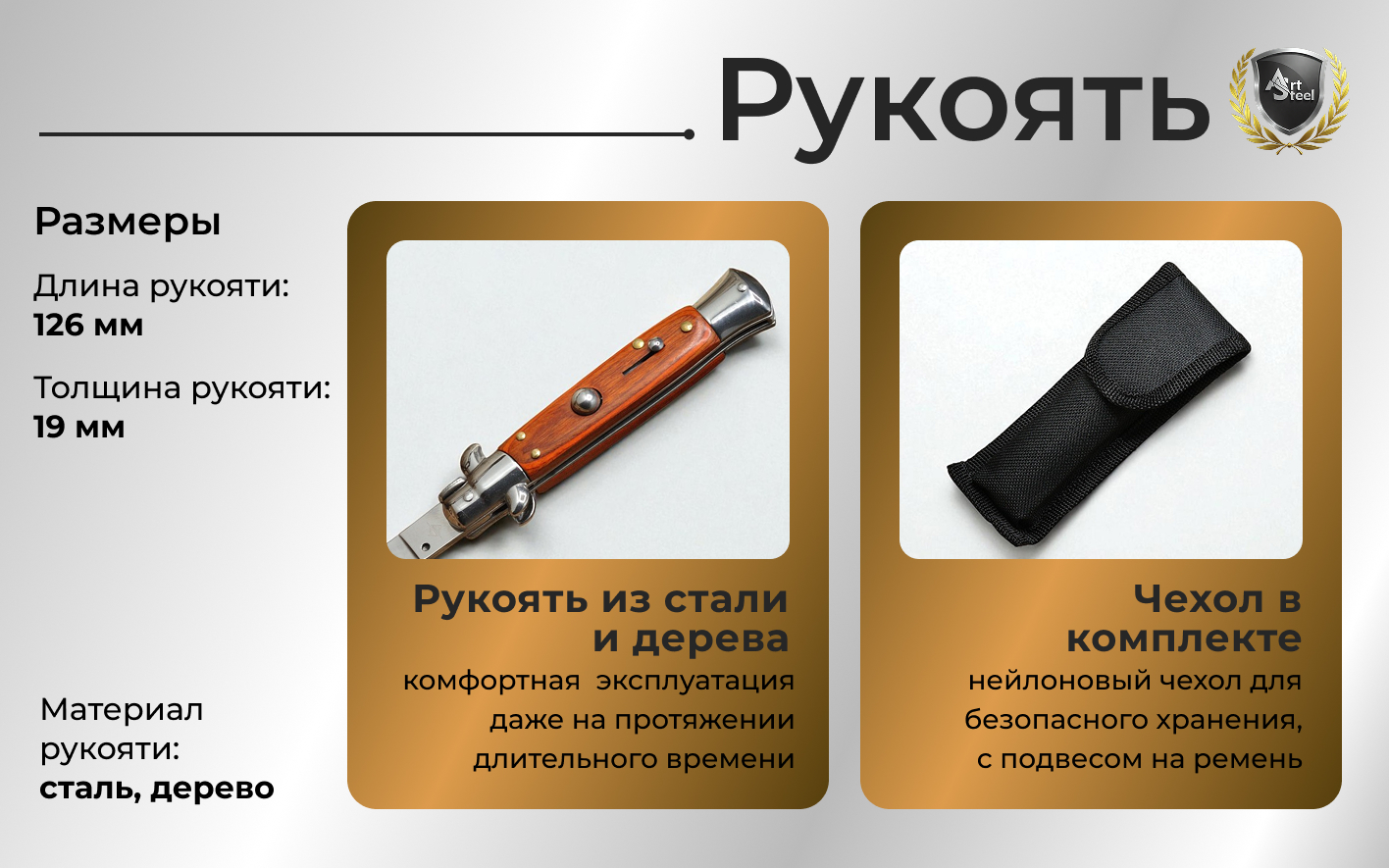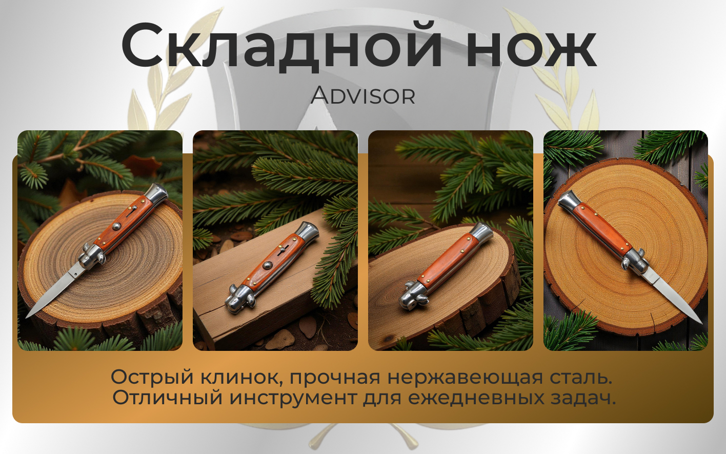Автоматический складной нож Advisor, сталь 65Х13, рукоять дерево, сталь