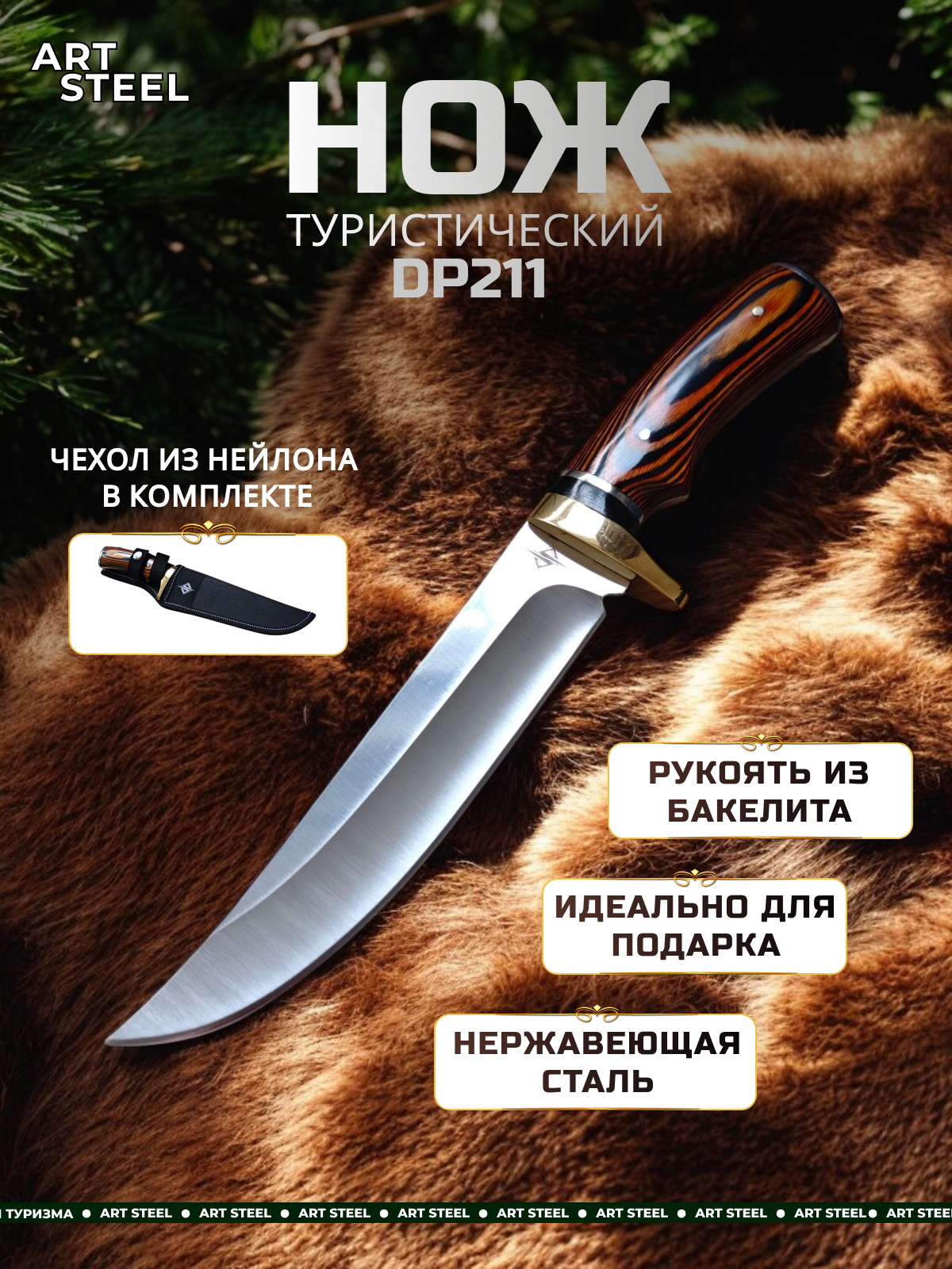 Охотничий нож DP211, сталь 65Х13, рукоять бакелит, латунь DP211
