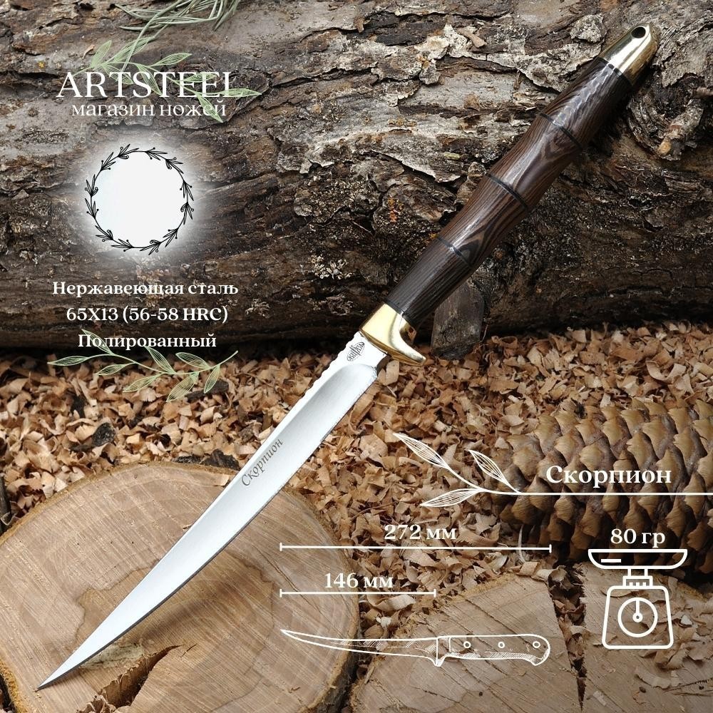 Туристический нож Скорпион, сталь 65Х13, рукоять дерево, латунь B42-34
