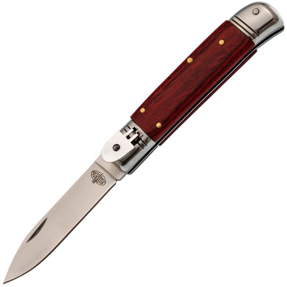 Клинок выполнен из нержавеющей стали 5Cr13MoV, отличающейся устойчивостью к коррозии, лёгкостью в заточке и достаточной прочностью для выполнения большинства повседневных задач. Форма drop-point обеспечивает ножу отличные режущие характеристики и уверенный колющий укол. Автоматический механизм бокового выброса на подшипниках позволяет быстро раскрыть клинок нажатием клавиши, а встроенный предохранитель предотвращает случайное срабатывание.