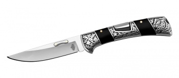 Клинок выполнен из нержавеющей стали 7Cr17MoV, которая отличается хорошей коррозионной стойкостью, простотой заточки и достаточной твёрдостью для повседневного использования. Извлечение клинка осуществляется при помощи продолговатого шпеня на обухе, а надёжная фиксация обеспечивается замком Back-Lock, что делает работу с ножом безопасной и удобной.