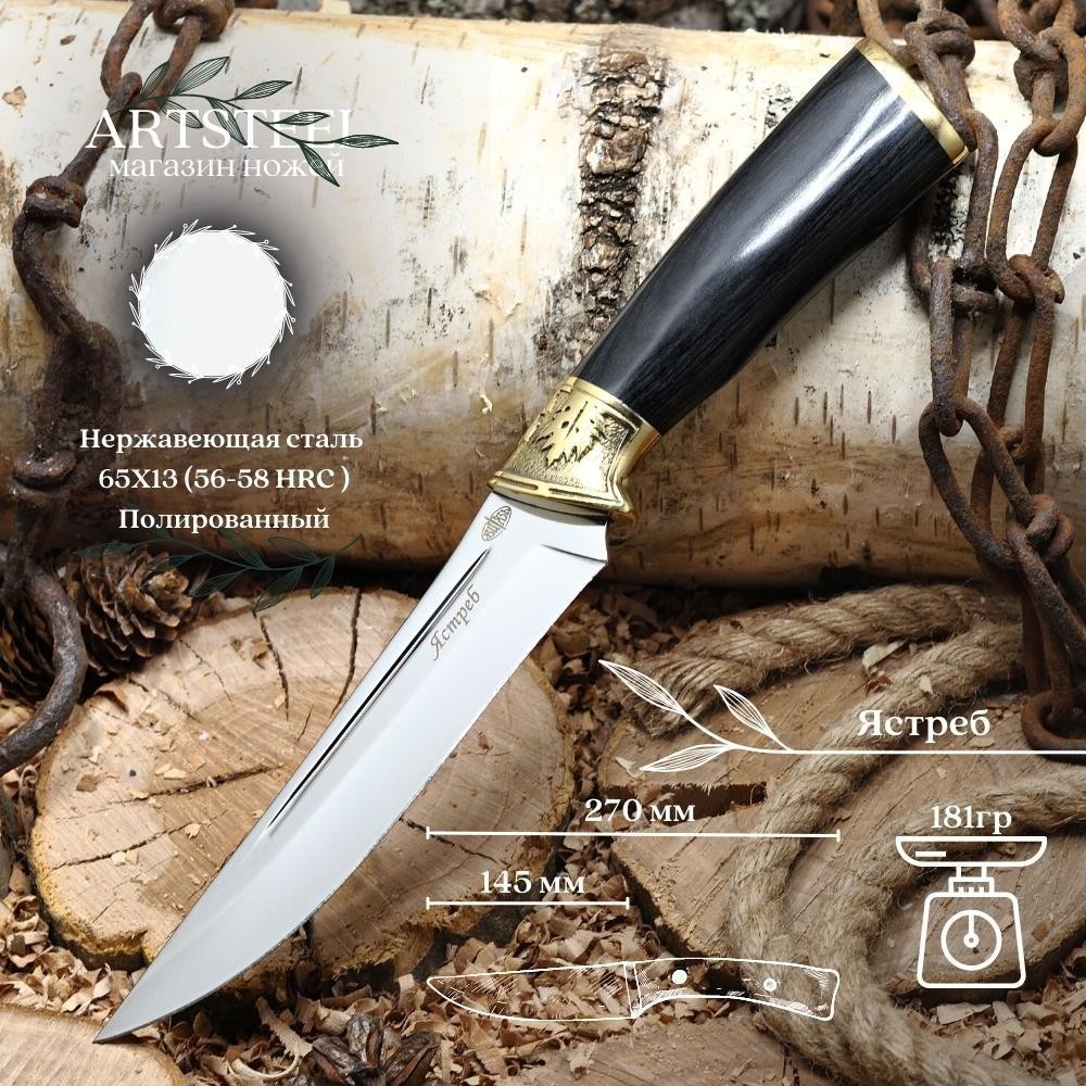 Охотничий нож Ястреб, сталь 65Х13, рукоять бакелит, латунь B66-341