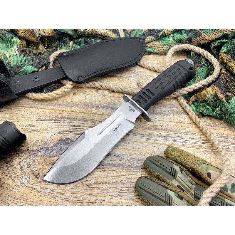 Мощный полевой нож Спецназ-5, сталь AUS8, рукоять эластрон B833-08K