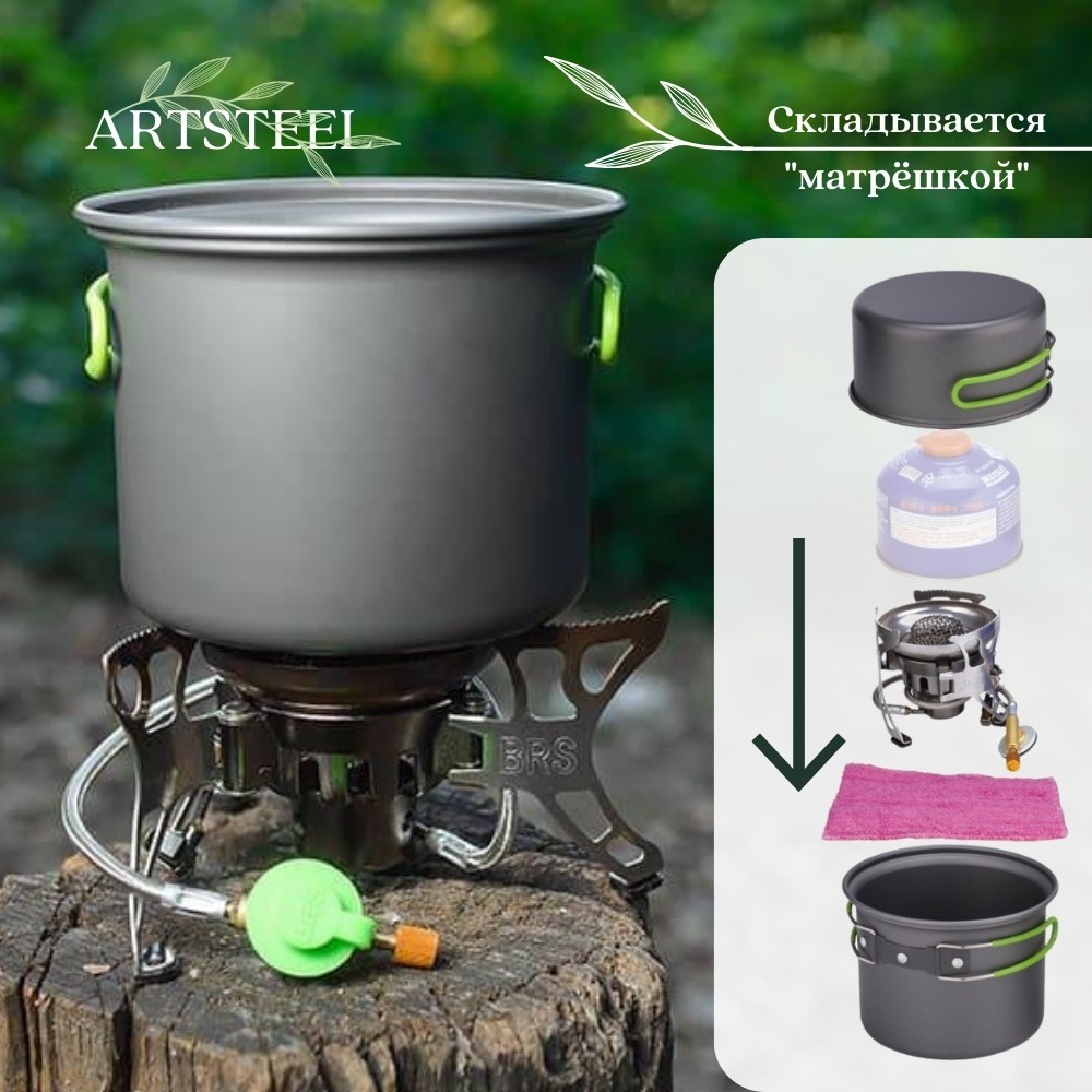 Портативная система приготовления пищи, набор из горелки, котелка и кастрюли BRS-T15A