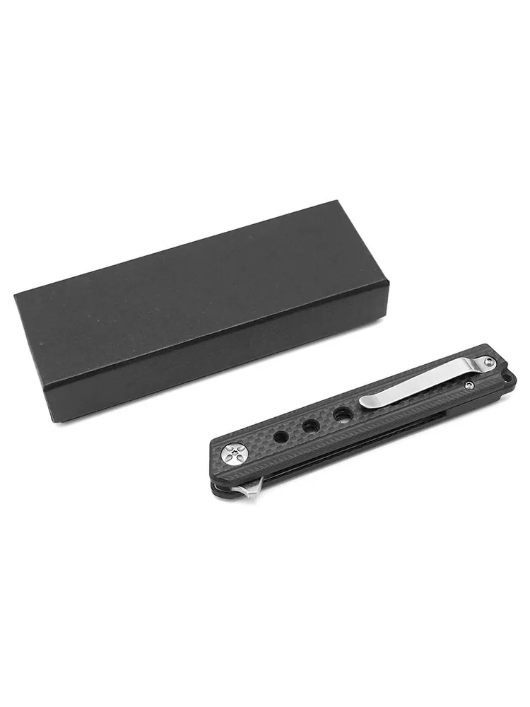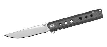 Рукоять выполнена из композитных материалов — G10 и карбона. Она прочная, устойчива к влаге и перепадам температур, при этом остаётся лёгкой и удобной. Текстурированная поверхность обеспечивает надёжный хват, а современное сочетание материалов придаёт ножу стильный внешний вид.