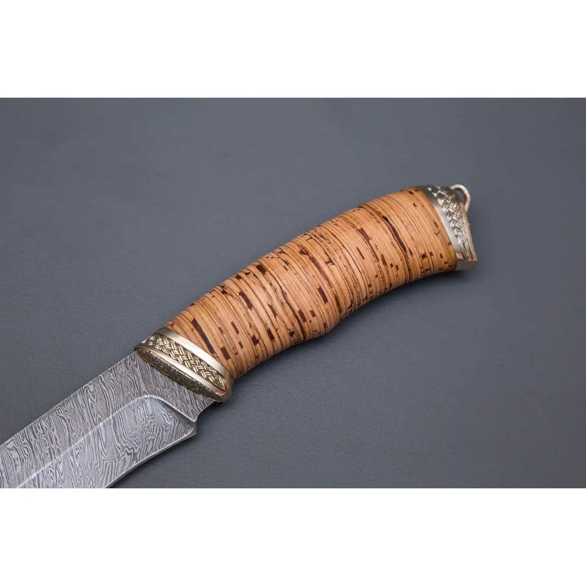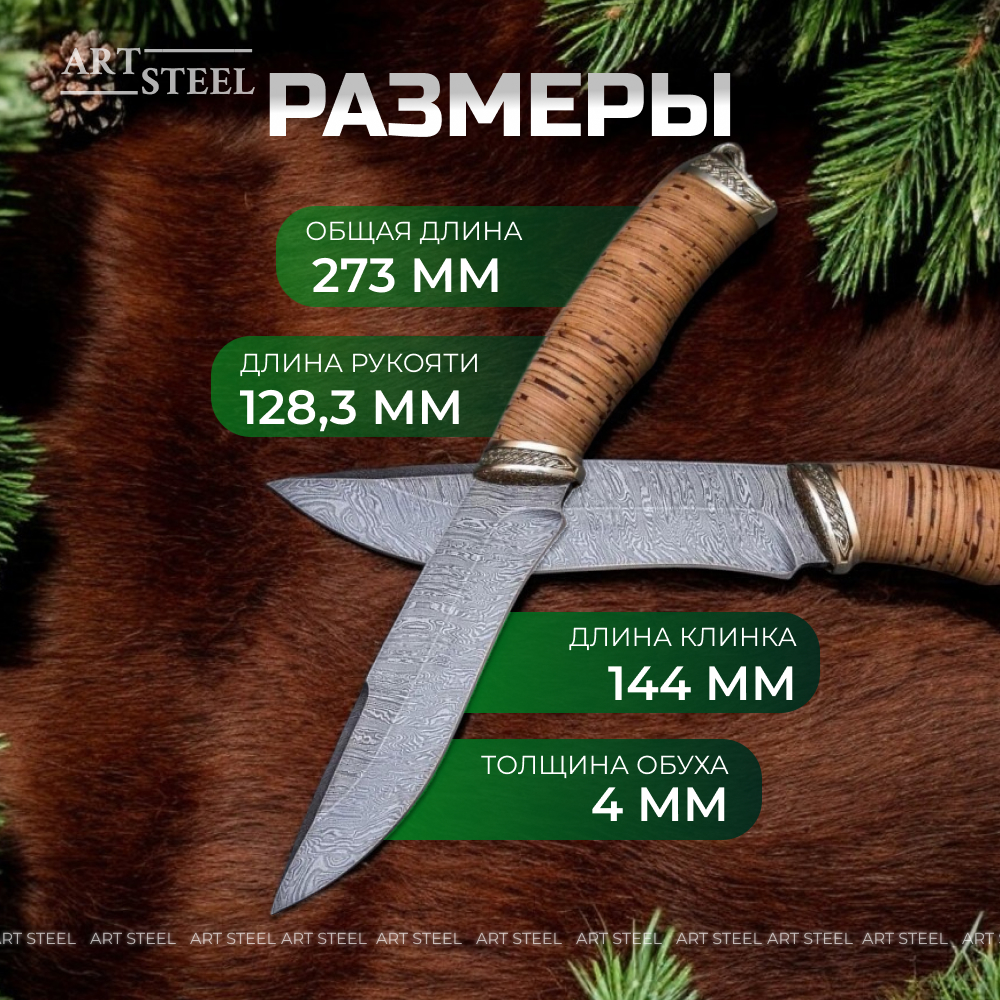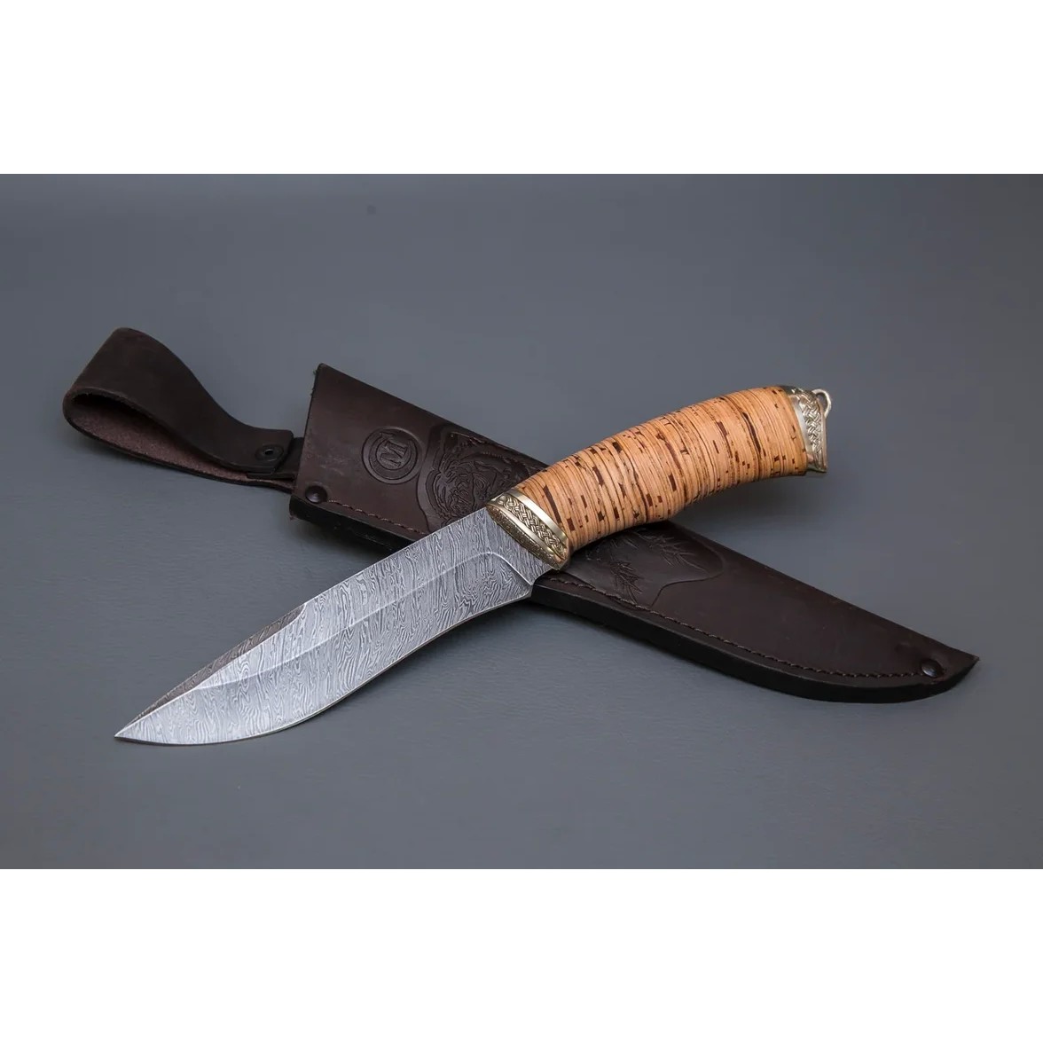 Нож Беркут из дамасской стали, рукоять береста, литьё мельхиор CH006-2