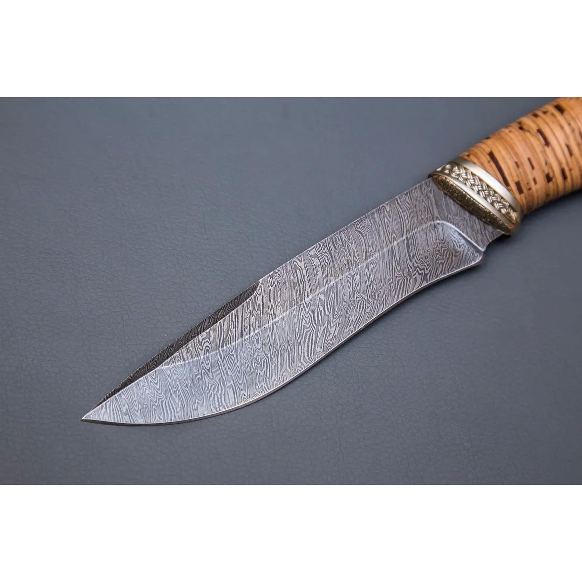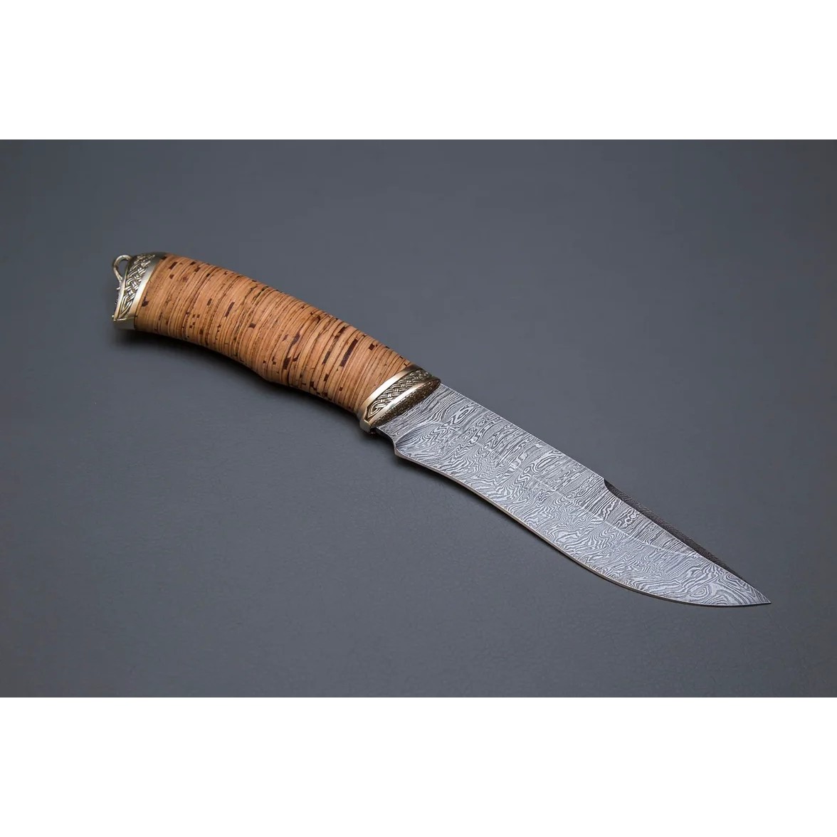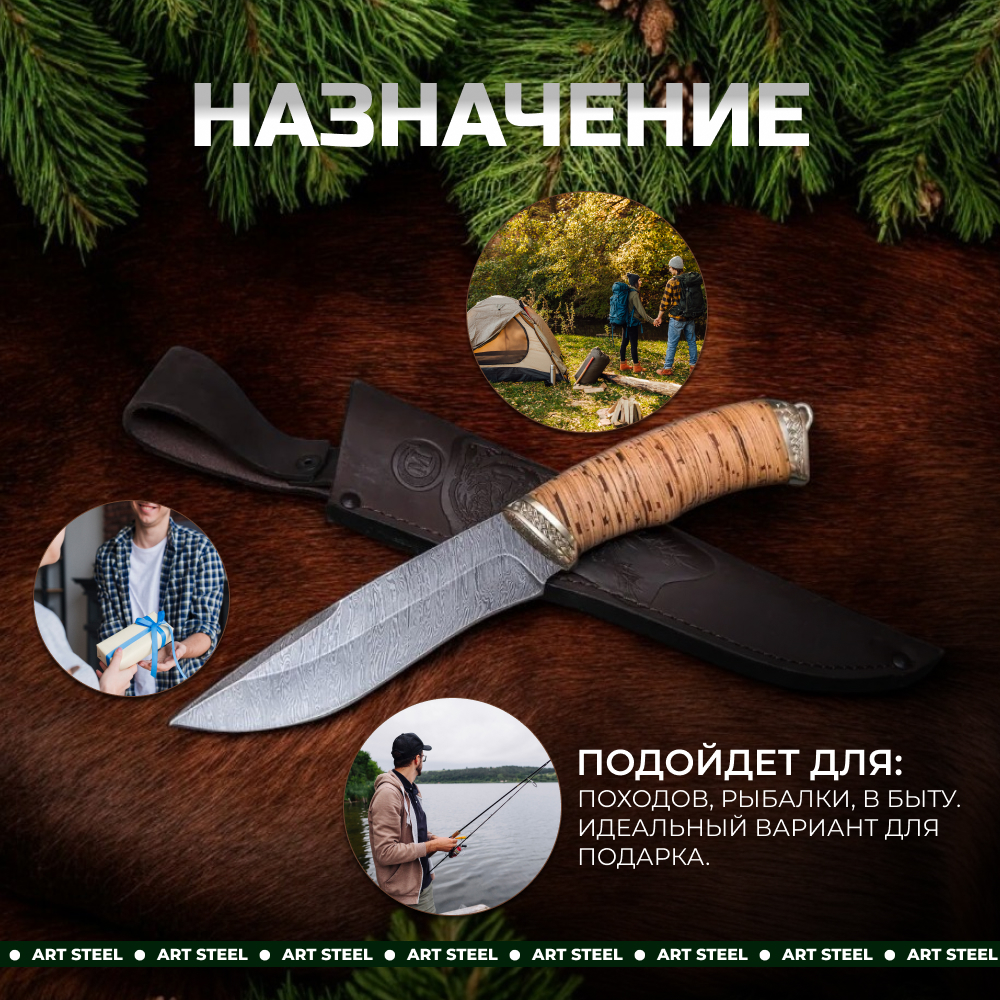Нож Беркут из дамасской стали, рукоять береста, литьё мельхиор CH006-2