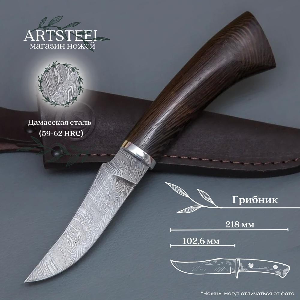 Нож Грибник из дамасской стали, рукоять венге, литье дюраль CH016