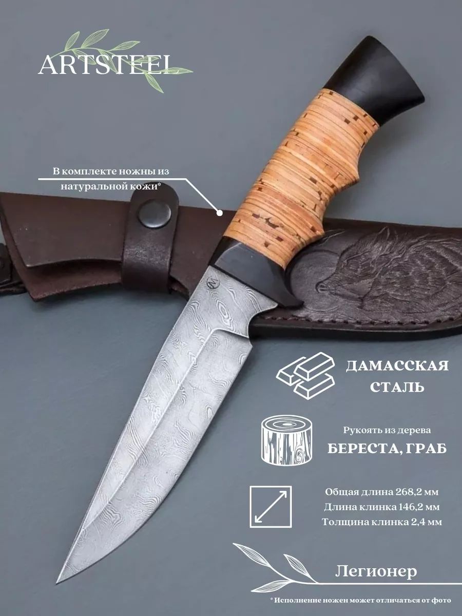 Нож Легионер из дамасской стали, рукоять береста, граб CH027