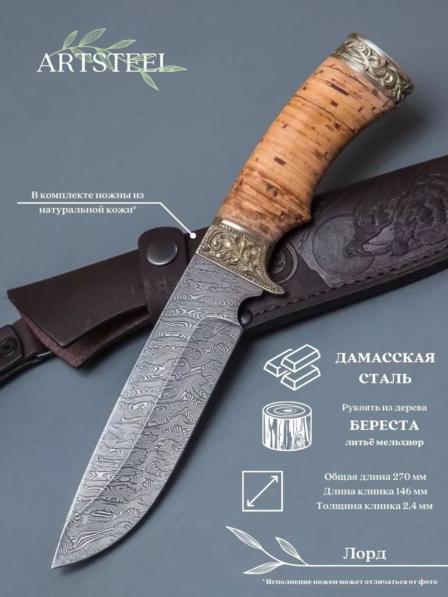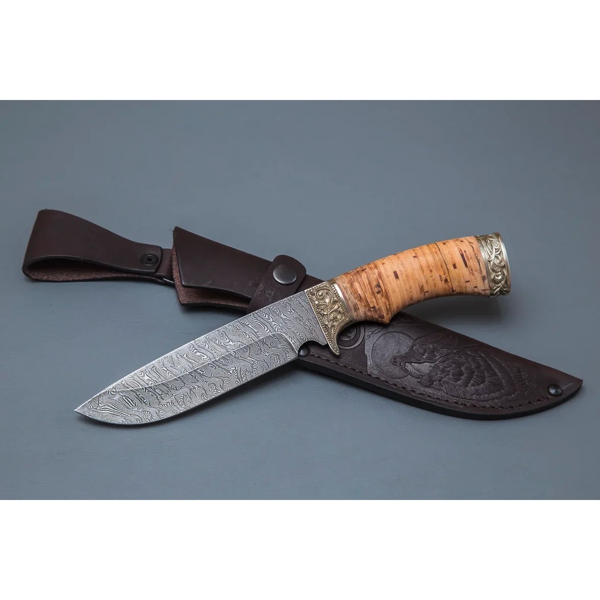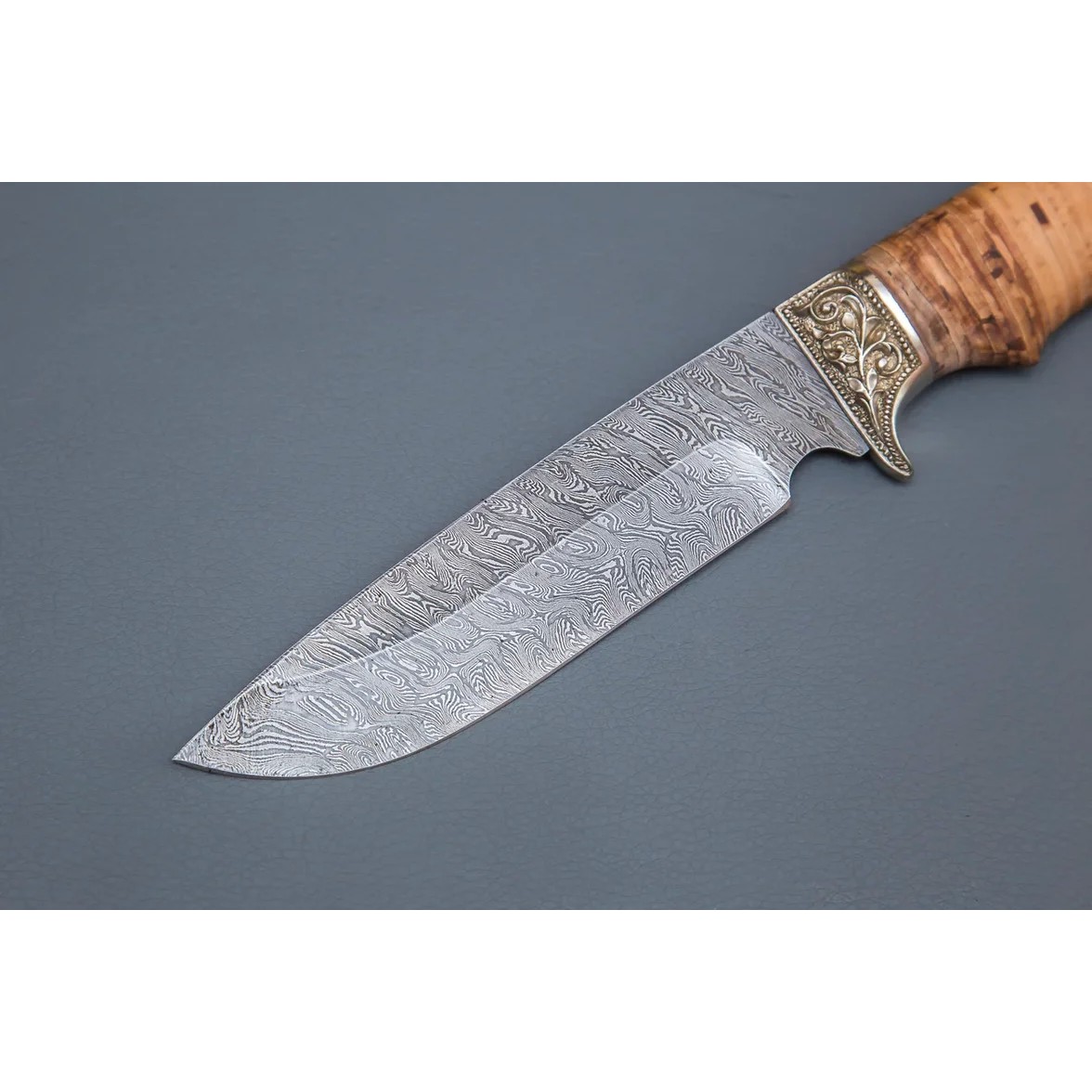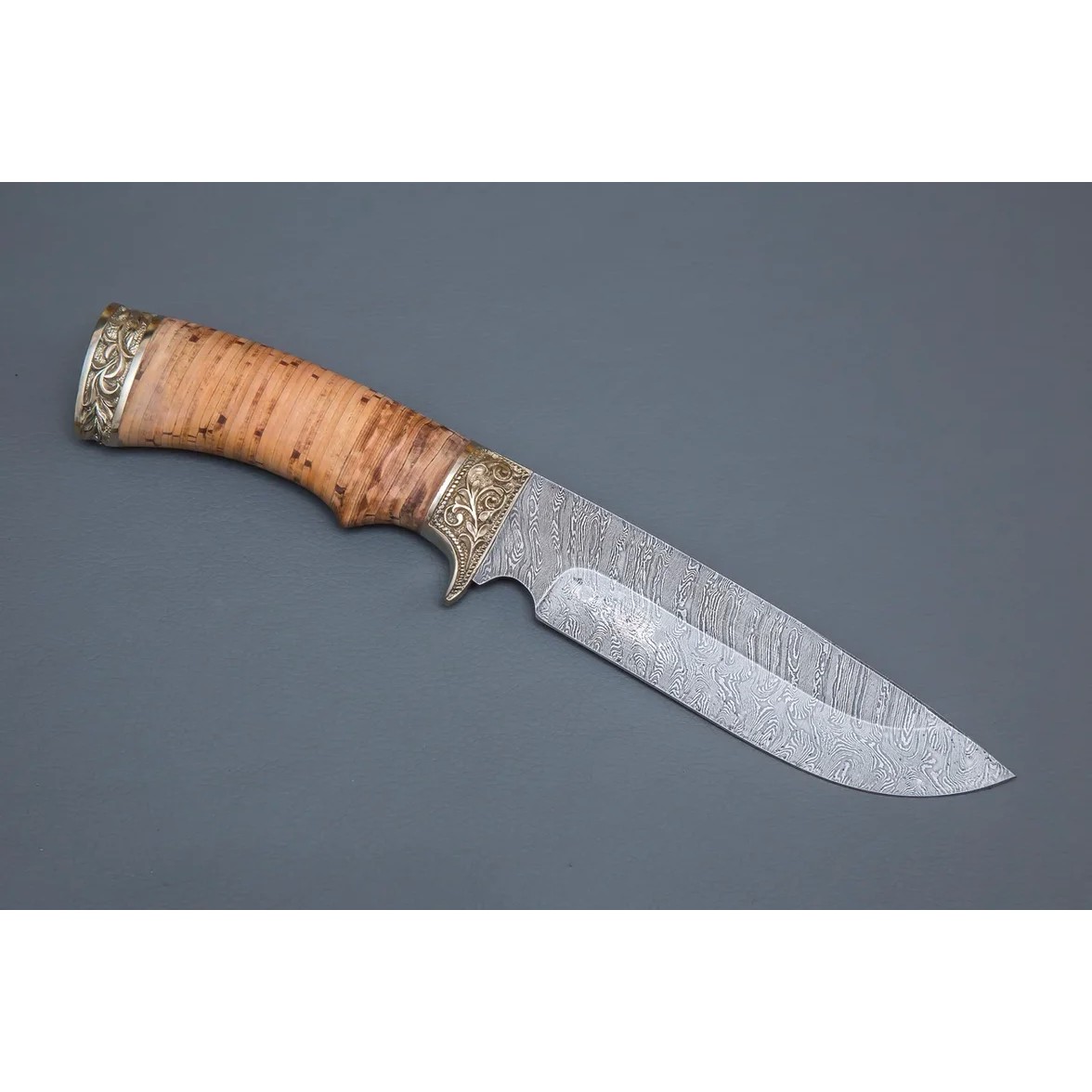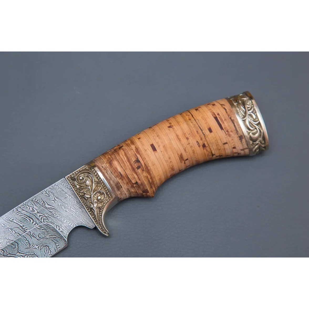 Нож Лорд из дамасской стали, рукоять береста, литьё мельхиор CH031-1