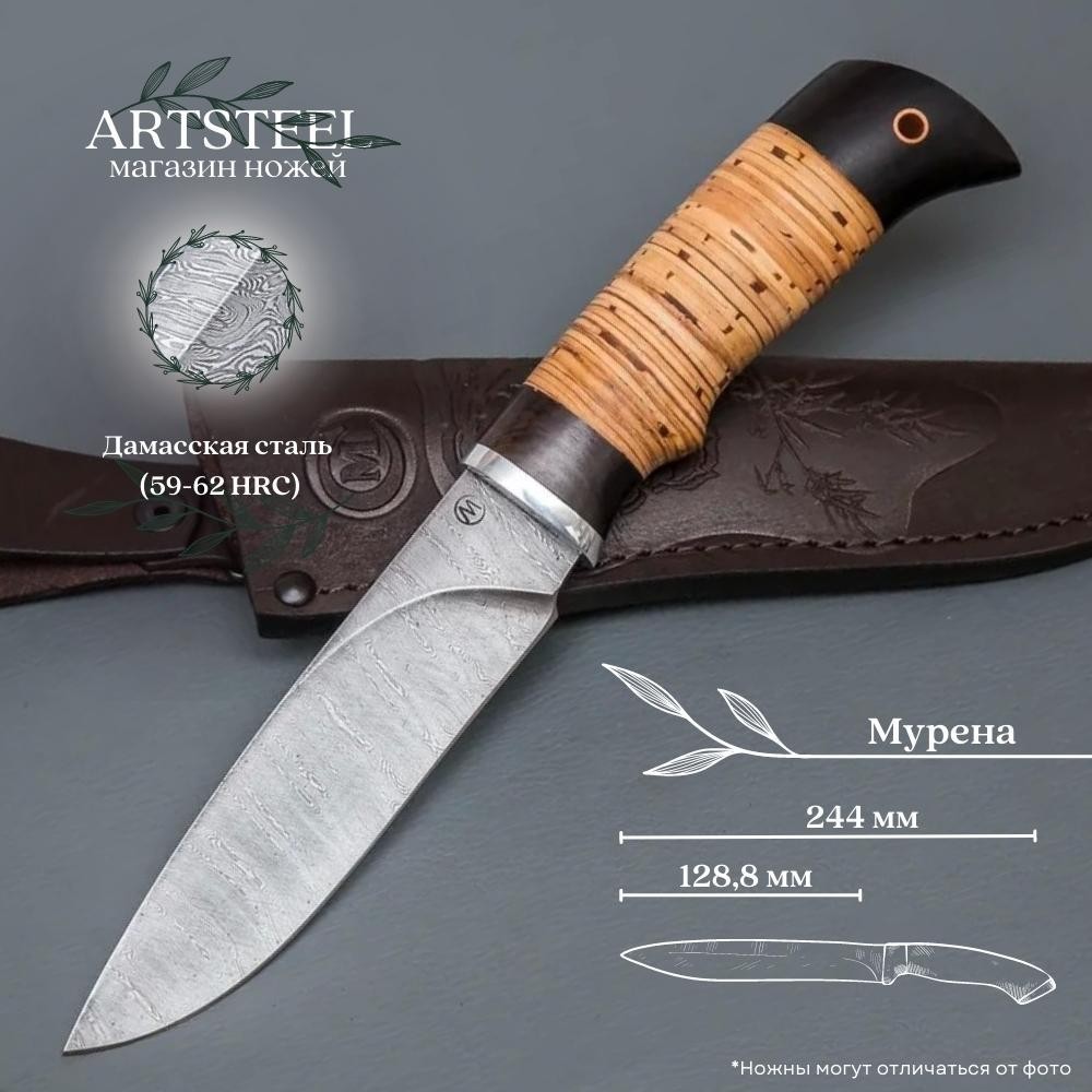Нож Мурена из дамасской стали, рукоять береста, граб, литье дюраль CH033