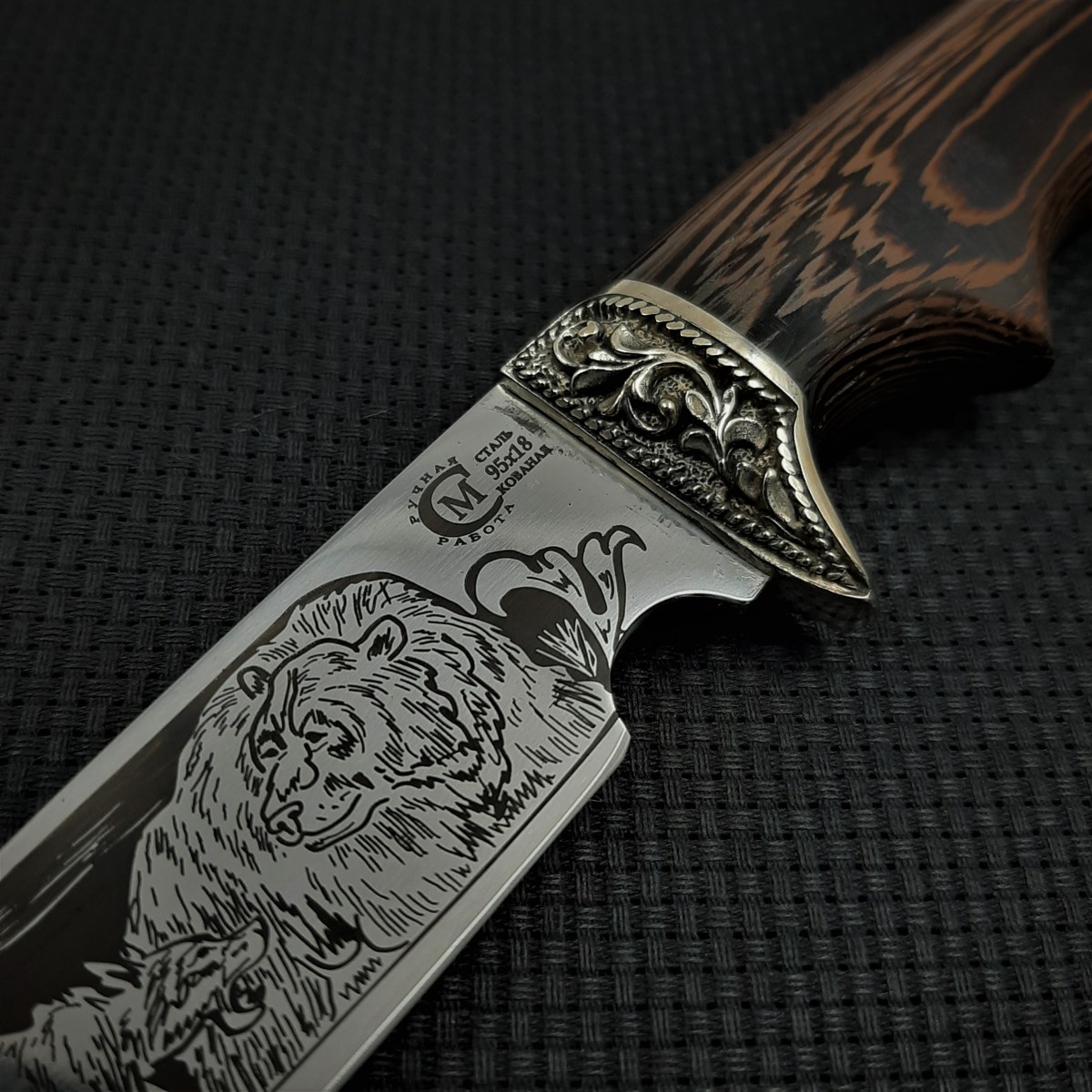 Нож Пластун из стали 95х18, рукоять венге, литьё мельхиор CH045