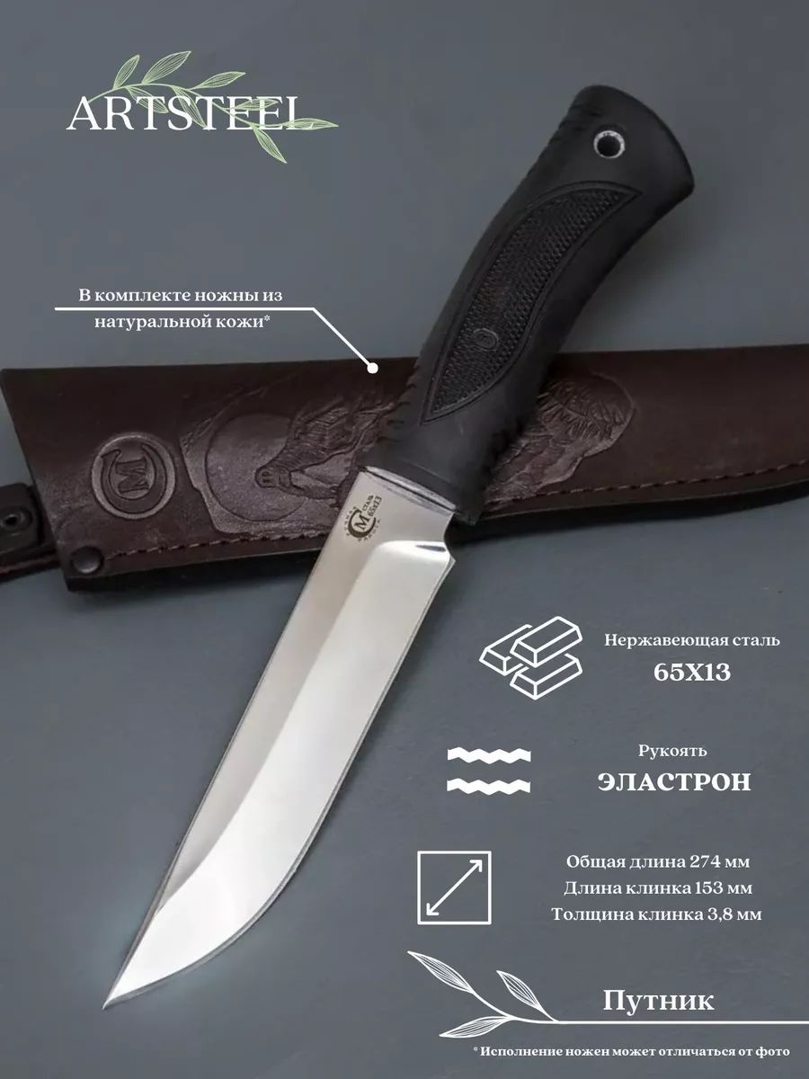 Нож Путник из стали 65х13, рукоять эластрон CH047-1