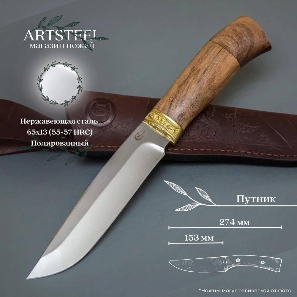 Нож Путник из стали 65х13, рукоять амазаку, латуннное литьё CH047-3