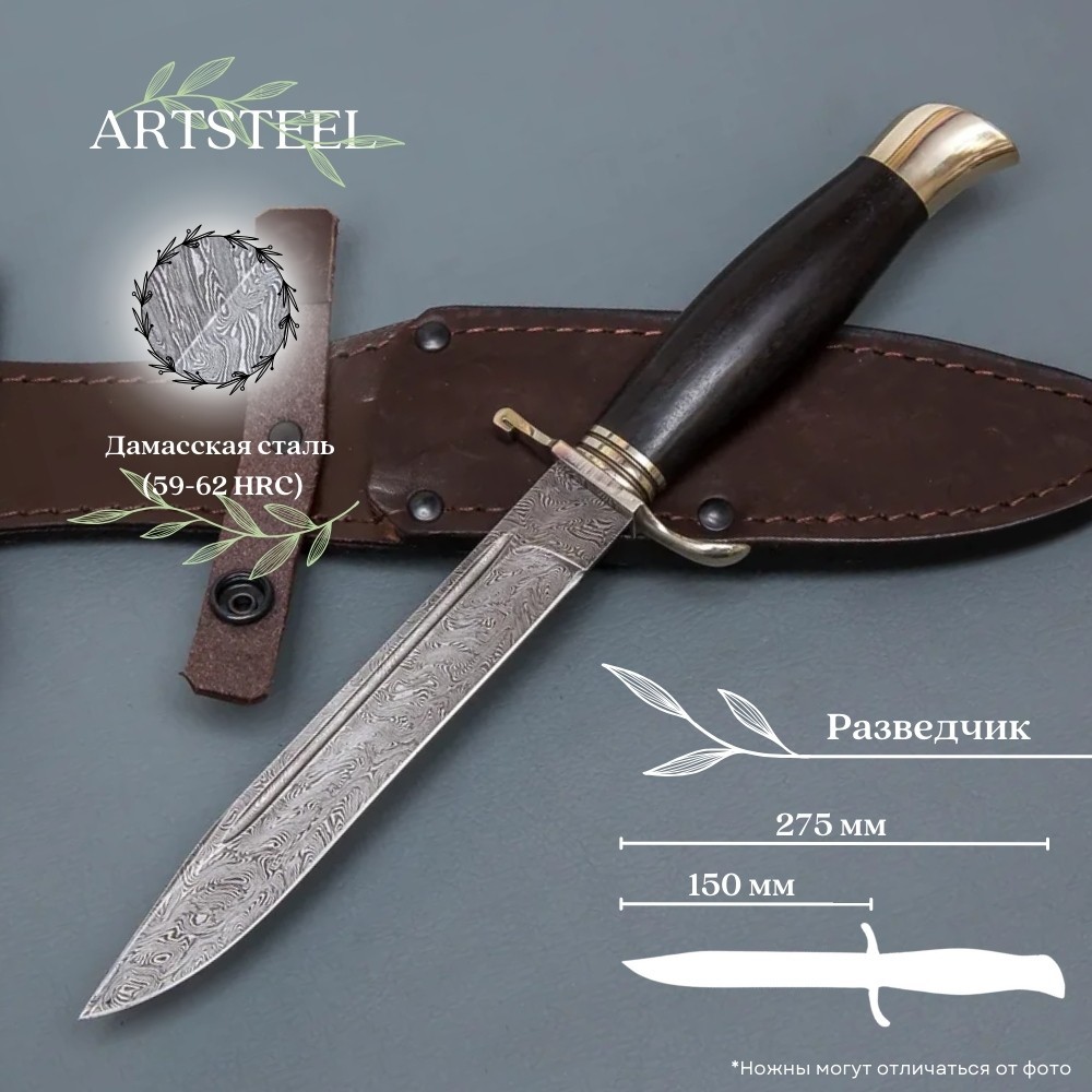 Нож Разведчик из стали дамасской стали, рукоять черное дерево CH049-5
