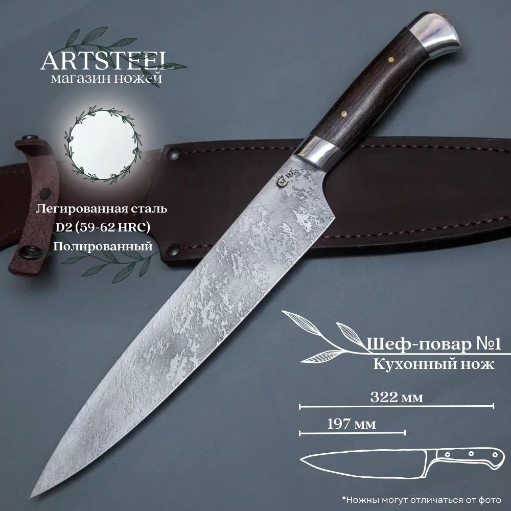 Нож Шеф-повар №1 из стали D2, рукоять венге, литье дюраль CH075