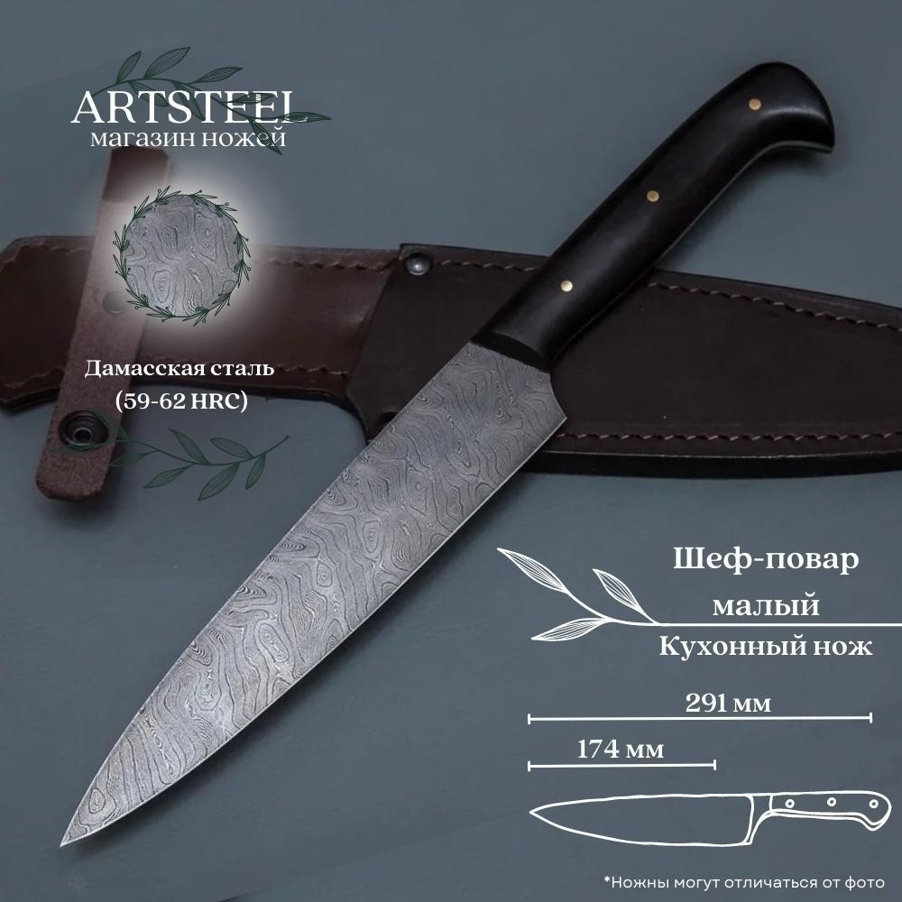 Нож Шеф-повар малый из дамасской стали, рукоять черное дерево CH076
