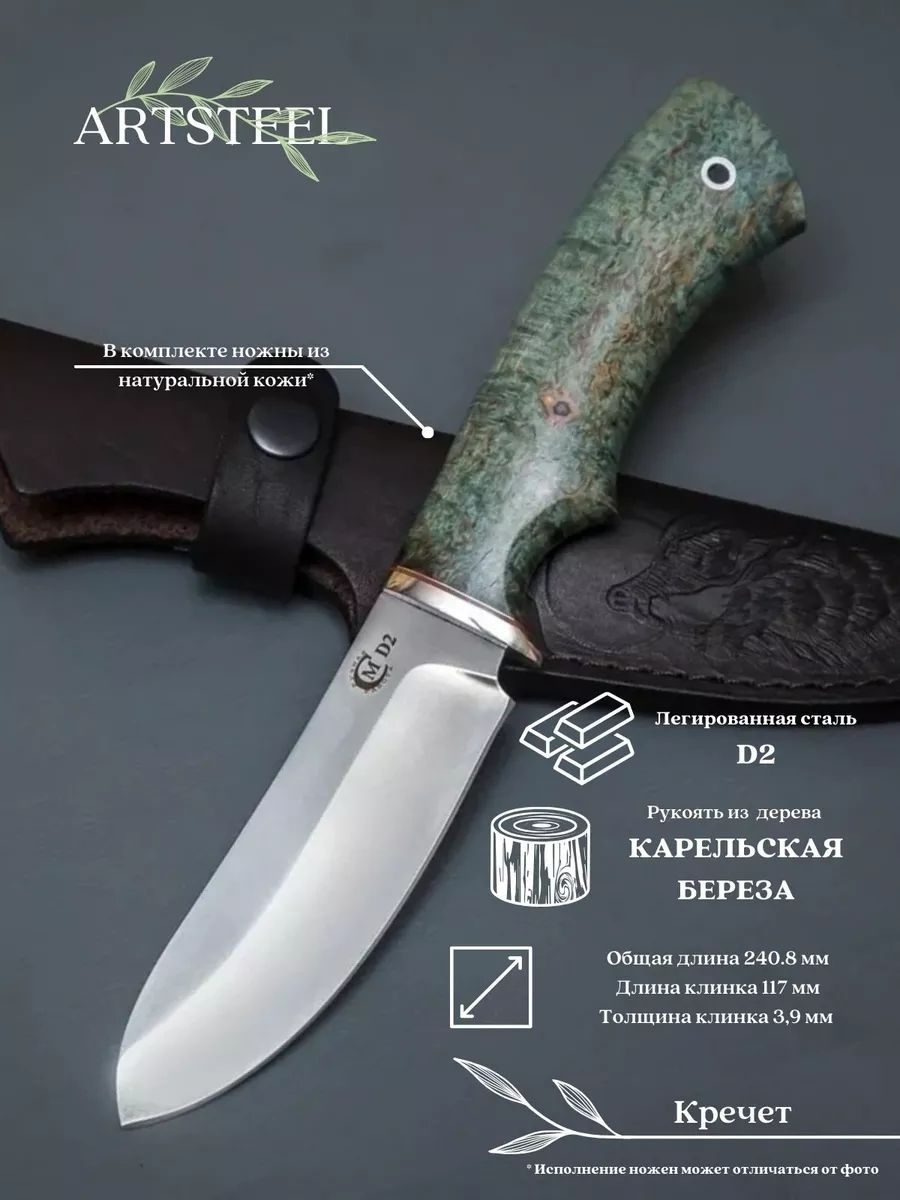 Нож Кречет из стали D2, рукоять карельская береза CH094