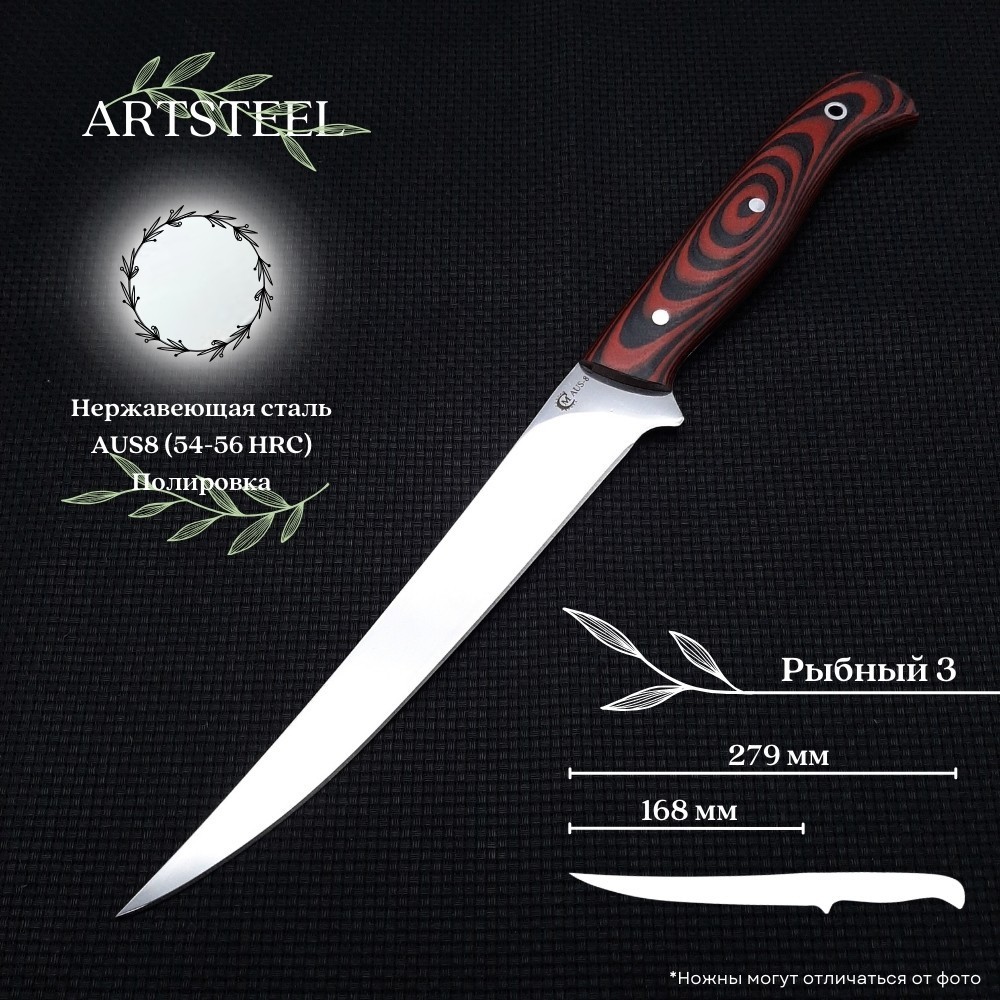 Кухонный нож Рыбный 3 из стали AUS8, рукоять G10 CH106