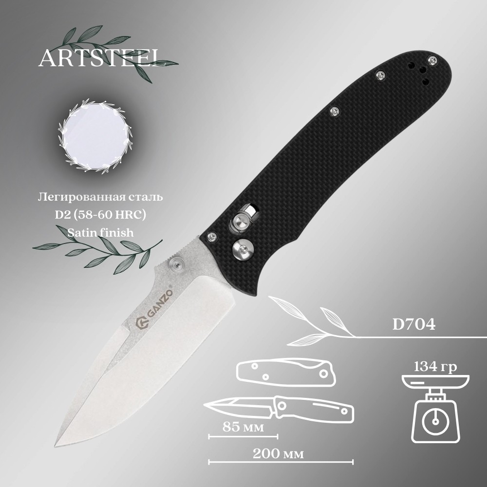 Складной нож Ganzo D704-BK, сталь D2, рукоять G10 D704-BK
