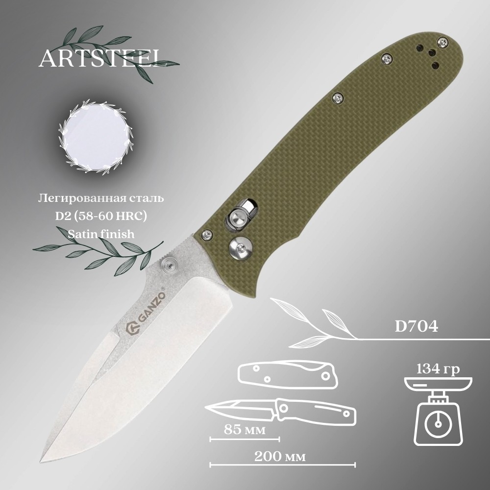 Складной нож Ganzo D704-GR, сталь D2, рукоять G10 D704-GR